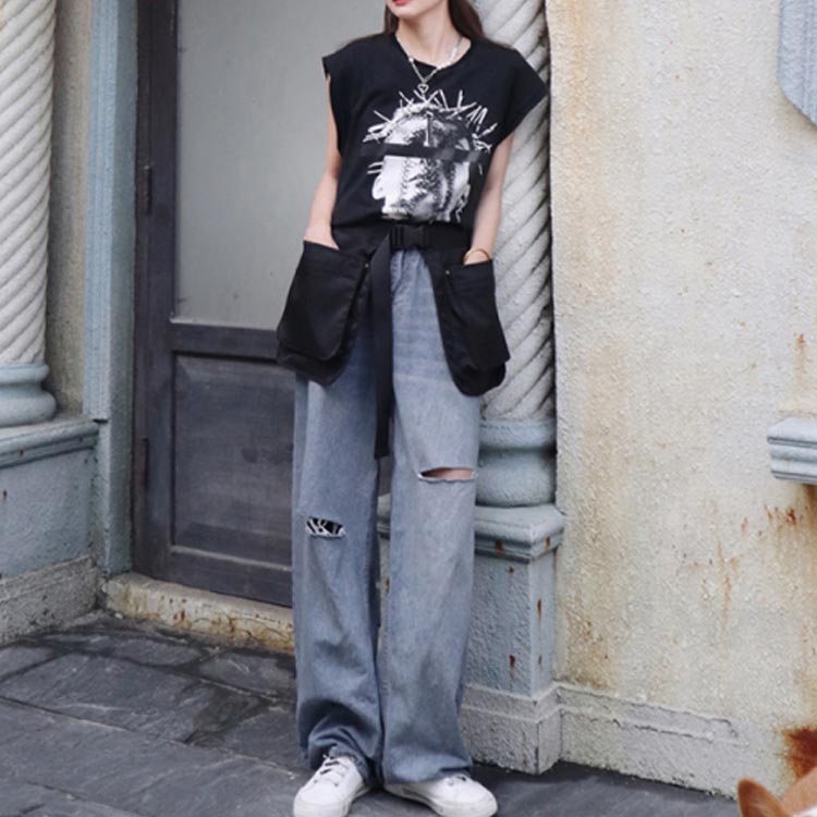 タンクトップレディースTシャツノースリーブUネックロゴプリント