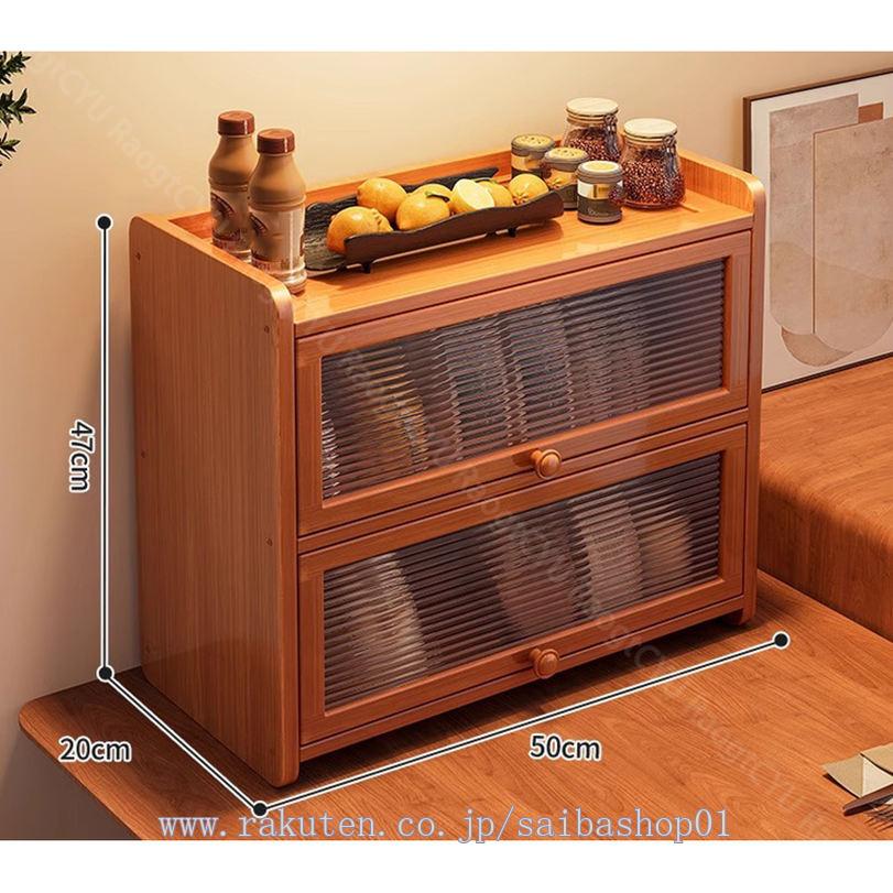 ミニ食器棚 卓上食器棚 ミニカップボード 上置き カウンター上収納棚 幅50 3cm 2 3段 竹製 キッチン 食器 収納棚 台所収納 フラップ扉 キッチン収納 一人暮らし カ 調味料入れ