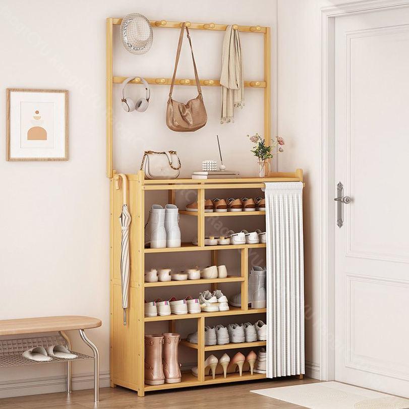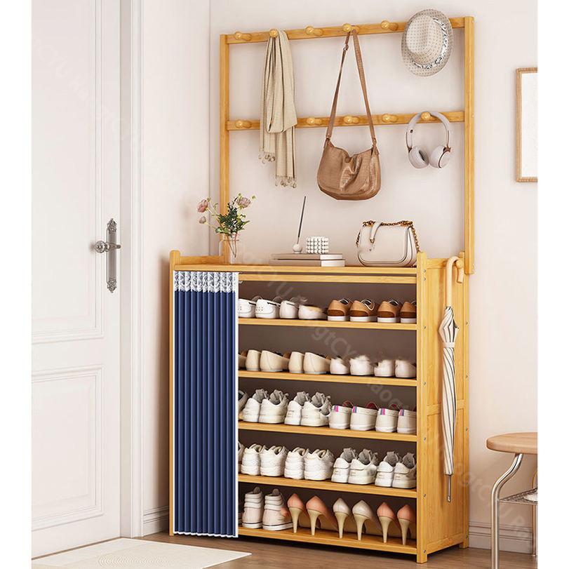 コートハンガー シューズラック ハンガーラック コートラック 帽子用スタンド 多目的ラック 靴 収納 玄関収納 玄関 寝室 収納キャビネット 省スペース スリム 多層 おしゃれ 防塵 通気 防 扉付き