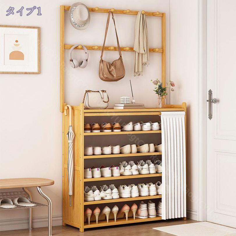 コートハンガー シューズラック ハンガーラック コートラック 帽子用スタンド 多目的ラック 靴 収納 玄関収納 玄関 寝室 収納キャビネット