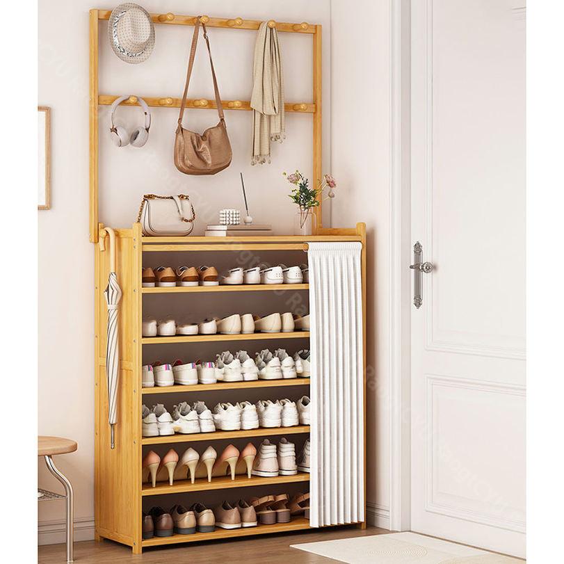 靴棚と服掛けスタンドが融合した設計で、多機能の玄関ラックです。
