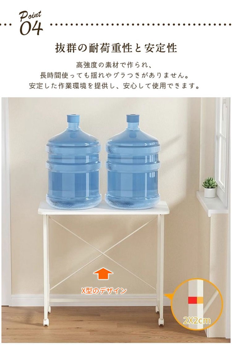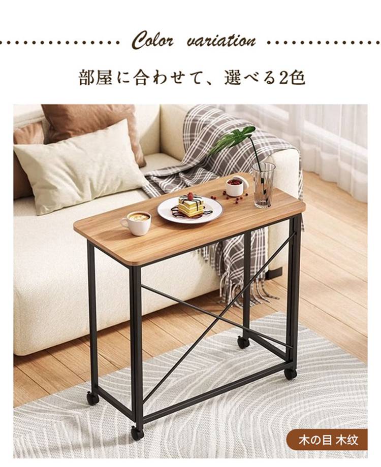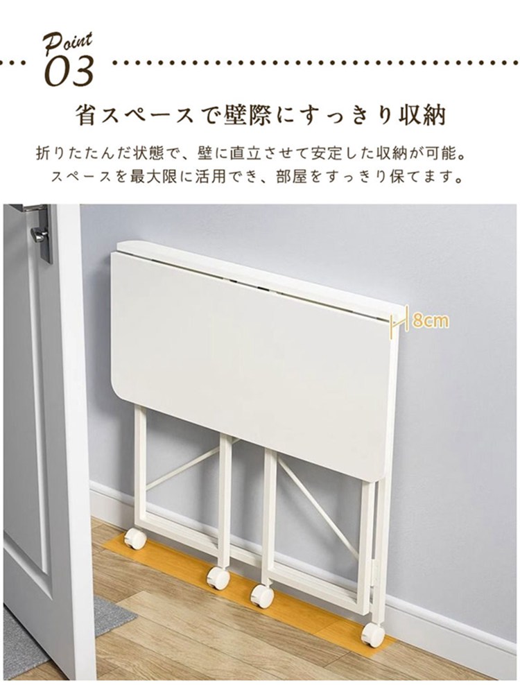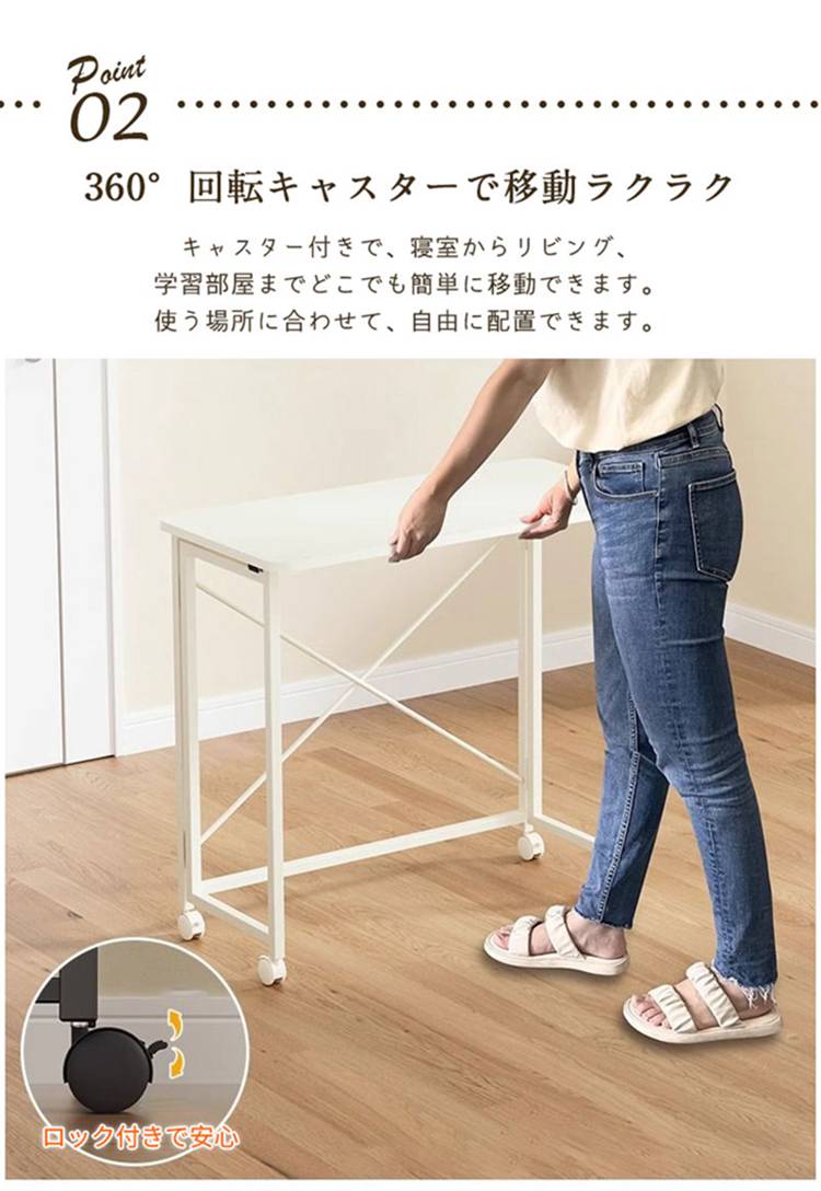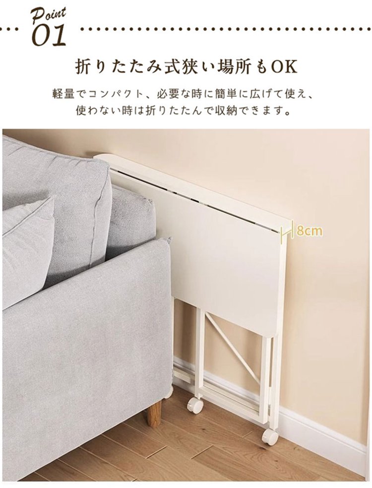 折りたたみデスク 木製 キャスター付き 木の目 ホワイト 60x40cm 80x40cm 100x50cm