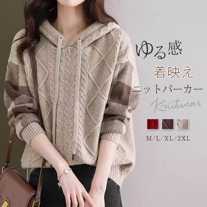 ニット セーター パーカー レディース トップス ニット セーター セーター 豊富 キャメル レッド コーヒー M L XL 2XL