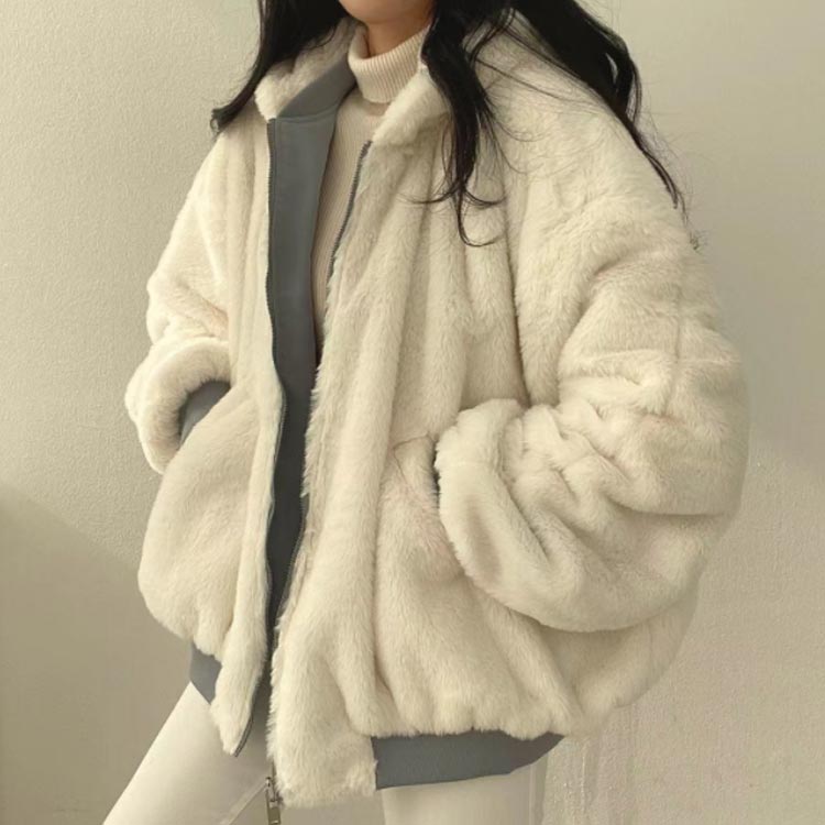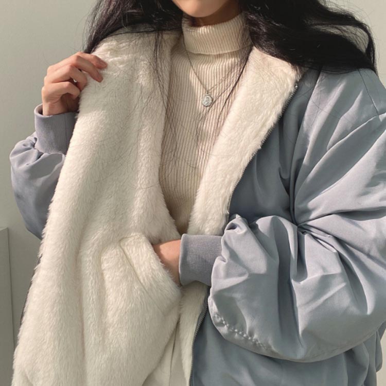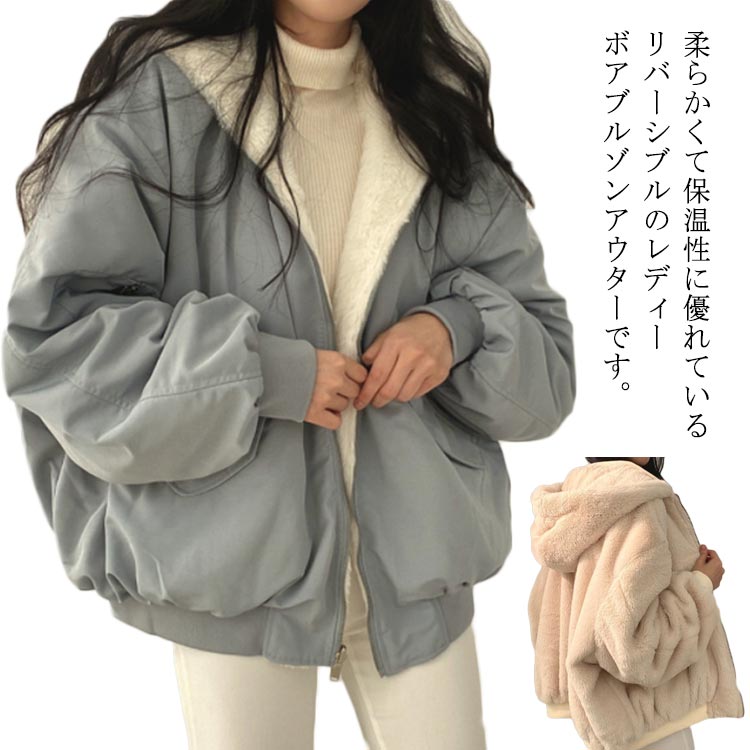 ボアブルゾン リバーシブル ボアジャケ レディースファッション 豊富 ブルー(リバーシブル) ベージュ(リバーシブル) S M L XL 2XL