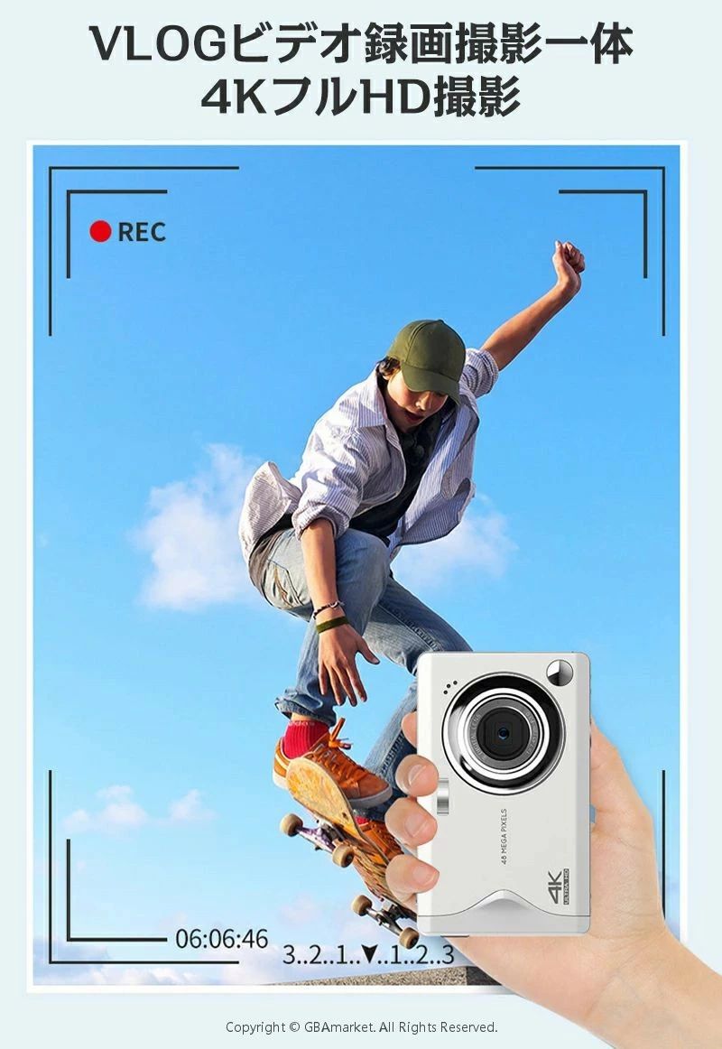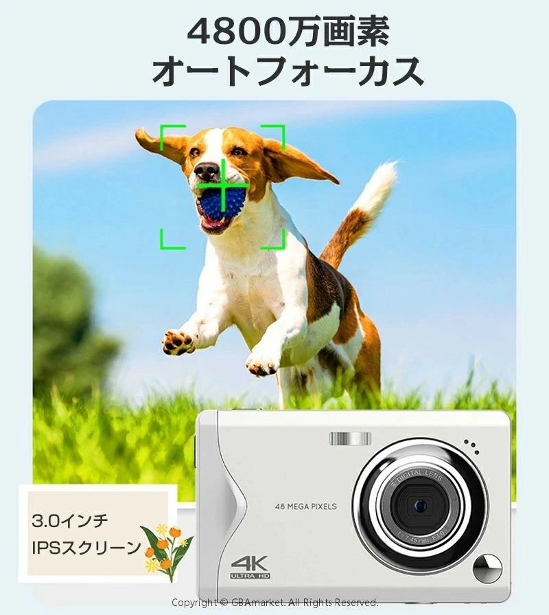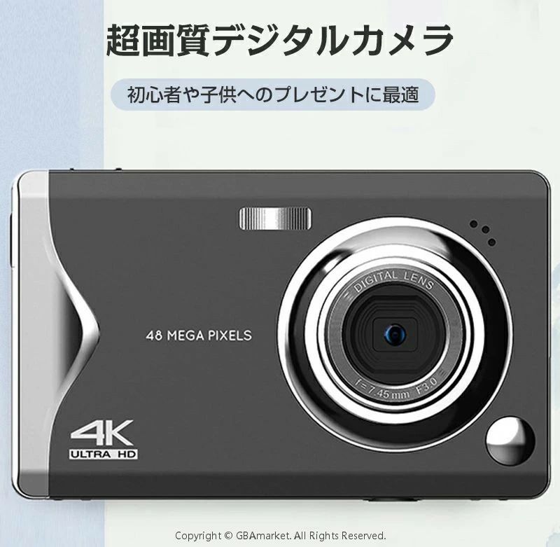 【オートフォーカスデジタルカメラ】最新のオートフォーカスデジタルカメラが登場!従来品と違い、4800万の高画素を搭載し、4Kの動画解像度を実現します。「AF機能:シャッターボタンをタッチしてピントが自動的に合わます。フォーカスフレームは黄色から緑色に変わってそのまま押して撮影できます」。操作性は簡単ですから、デジカメの入門機として初心者や学生にも簡単に綺麗な写真を撮れます。