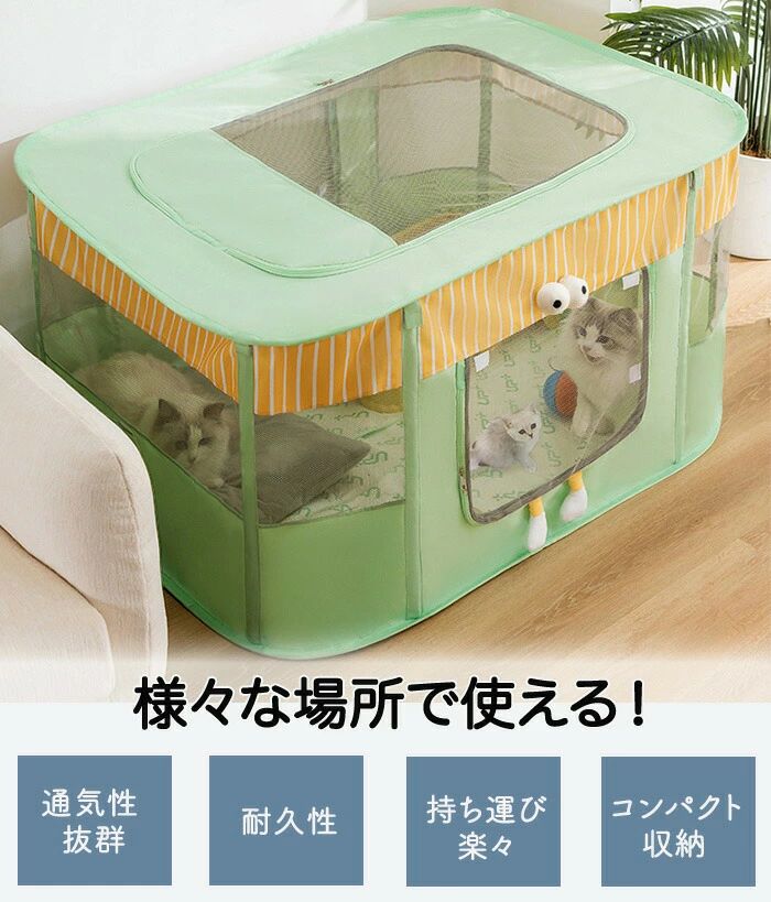 ペットサークル ペットハウス ペットお家 ペットお部屋 猫 猫サークル 猫ハウス 持ち運び可能 コンパクト 折り畳み 長方形 メッシュ 通気性 移動楽々 ゲージ 屋内 アウトドア お出かけ 旅行 屋外