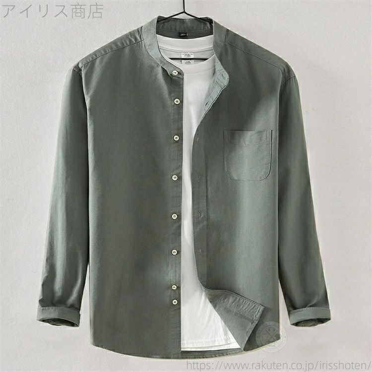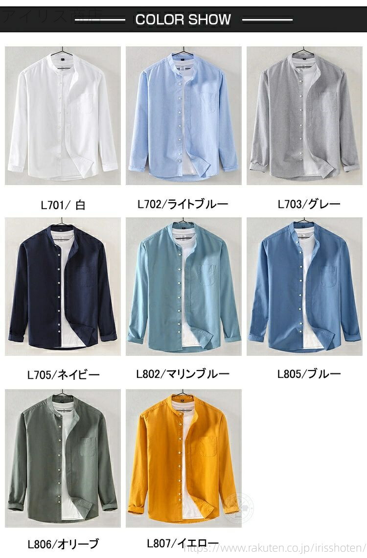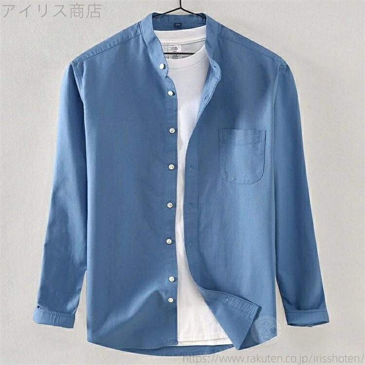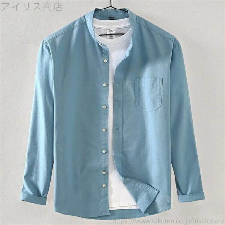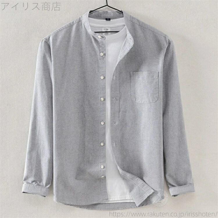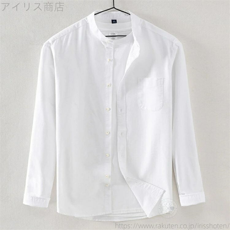 オックスフォードシャツ シャツ メンズ 長袖 綿100% カジュアルシャツ スタンドカラー ノーカラー 無地 羽織 白シャツ 立衿