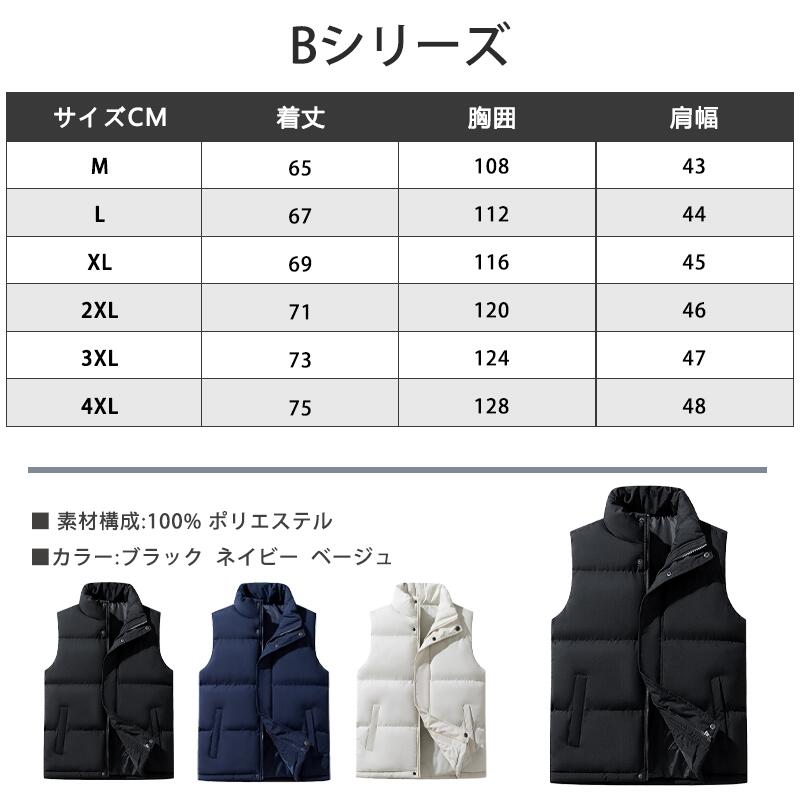 中綿ベスト メンズ 男女兼用 ベスト トップス ベスト ジレ 豊富 Aブラック Aネイビー Aグリーン Aカーキ Bブラック Bネイビー Bベージュ M L XL 2XL 3XL 4XL