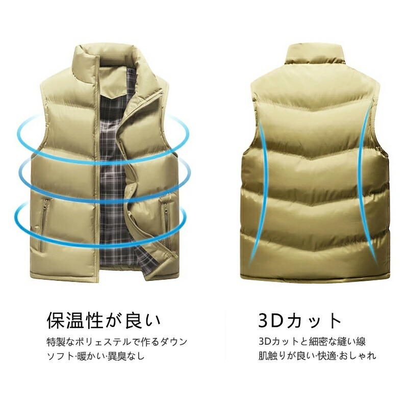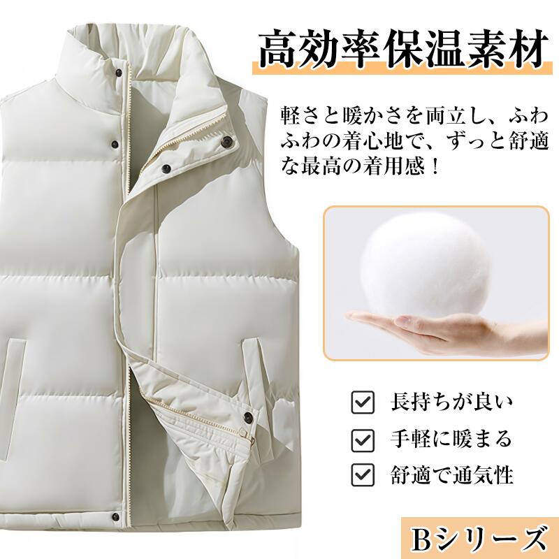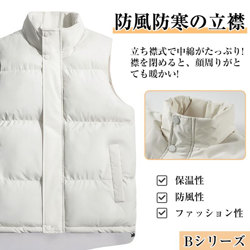 中綿ベスト メンズ 男女兼用 ベスト 無地 高品質ダウン レディース 立襟 羽根 大きいサイズ アウター 防寒 軽量 暖かい フェイクダウン インナー 中綿ジャケット ジレ チョッキ おしゃれ コート