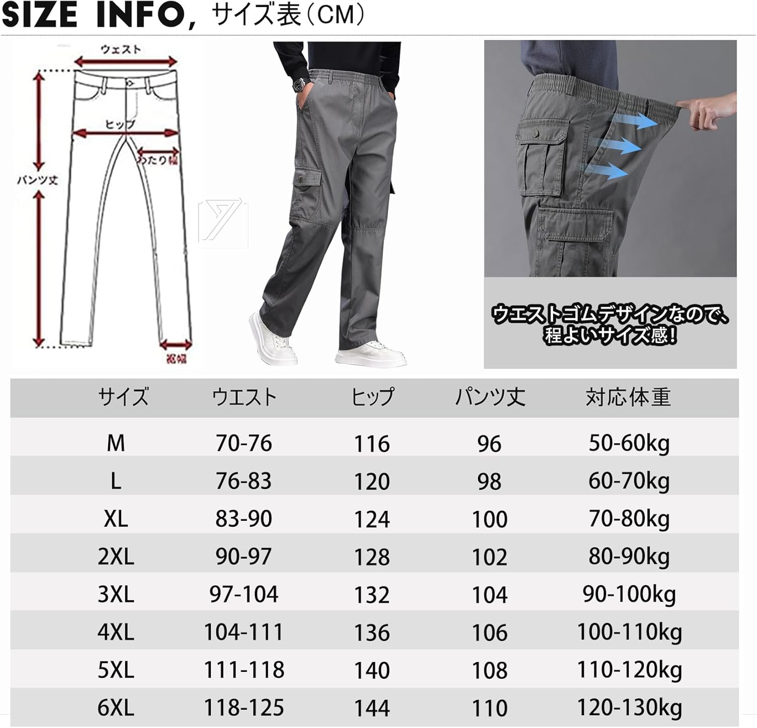 カーゴパンツ メンズ パンツ 作業着 ズボン パンツ 続々登場 カーキ グリーン グレー ブラック M L XL 2XL 3XL 4XL 5XL 6XL