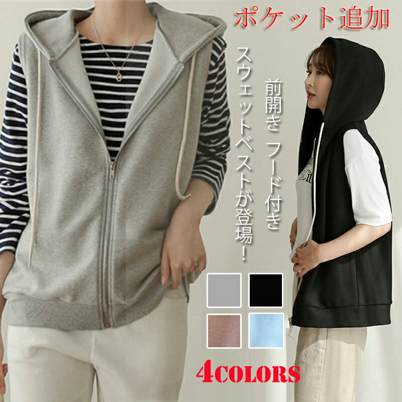 ベスト スウェット パーカー スポーテ トップス ベスト 豊富な品揃え グレー ブラック ピンク ブルー