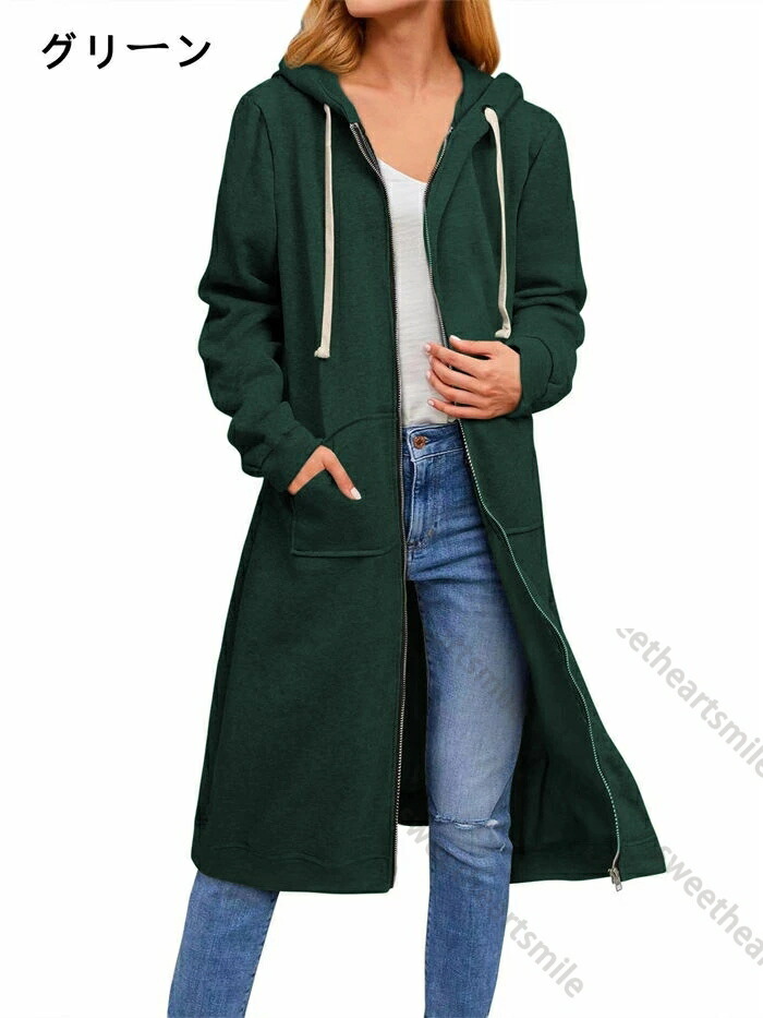 ロングパーカー レディース アウター コート ジャケット 豊富 ブラック グレー ネイビー コーヒー グリーン S M L XL 2XL 3XL