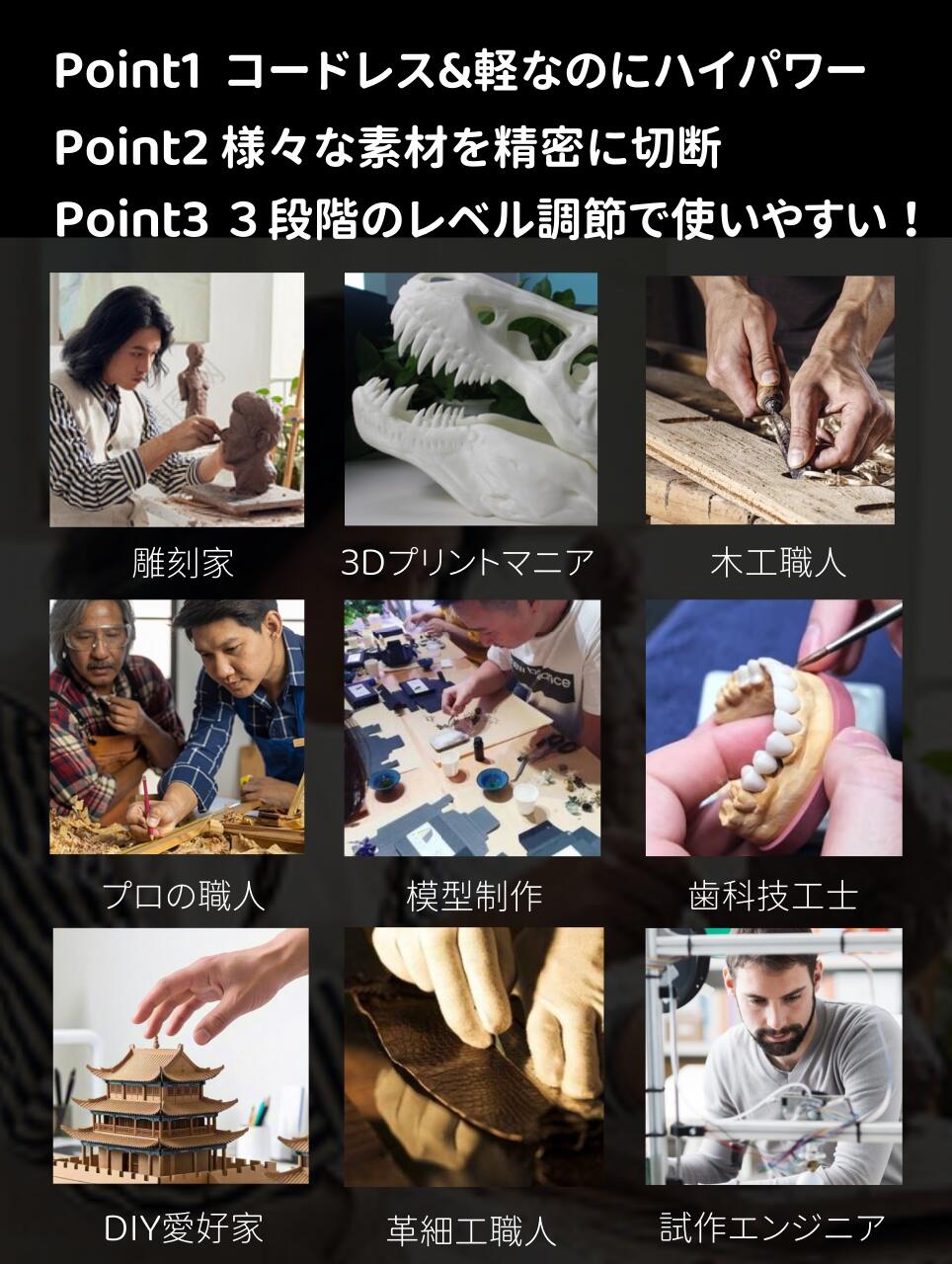 //3つのパワーモード切替: シンプルなボタン操作で、細かい作業から強靭な素材まで、タスクに最適なモードに即時切替。