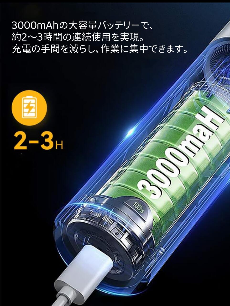 //大容量3,000mAhバッテリー: 最大2~3時間の連続使用が可能。頻繁な充電の必要がなく、創造的な作業をスムーズに続けられます。