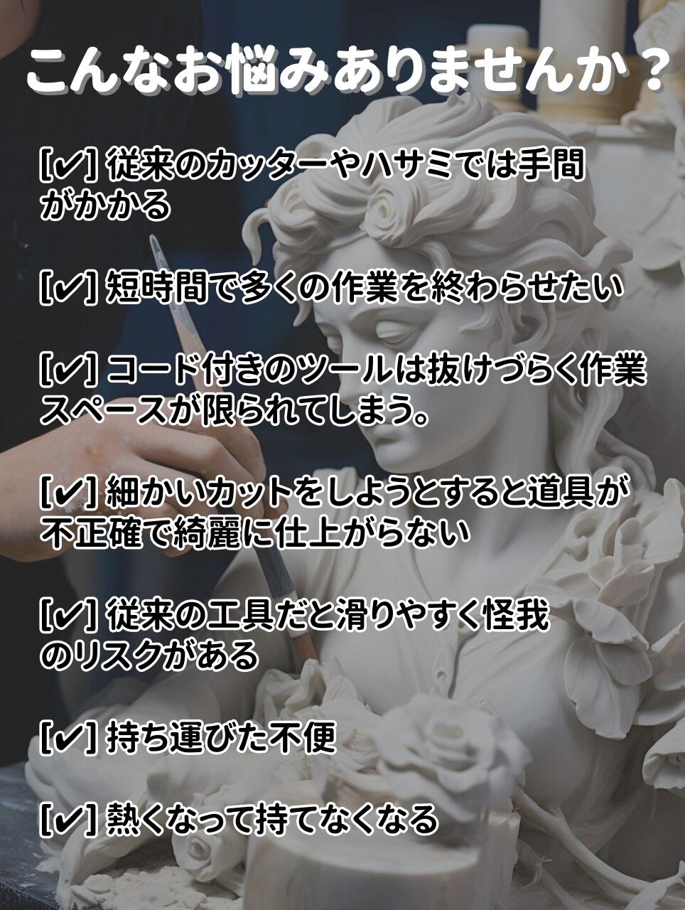 模型製作者の方々の声を集め、開発されたこのツールは、毎秒40,000回の高速振動で、様々な困難な素材も容易に、精密かつ美しくカット。あなたの創作プロセスをよりスムーズ、効率的、かつ安全にします。