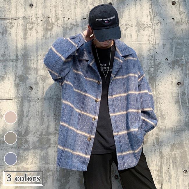 ピーコート メンズ チェスターコート チェック柄 ツイード ジャケット アウター 厚手 シャツジャケット ラシャコート お洒落 秋