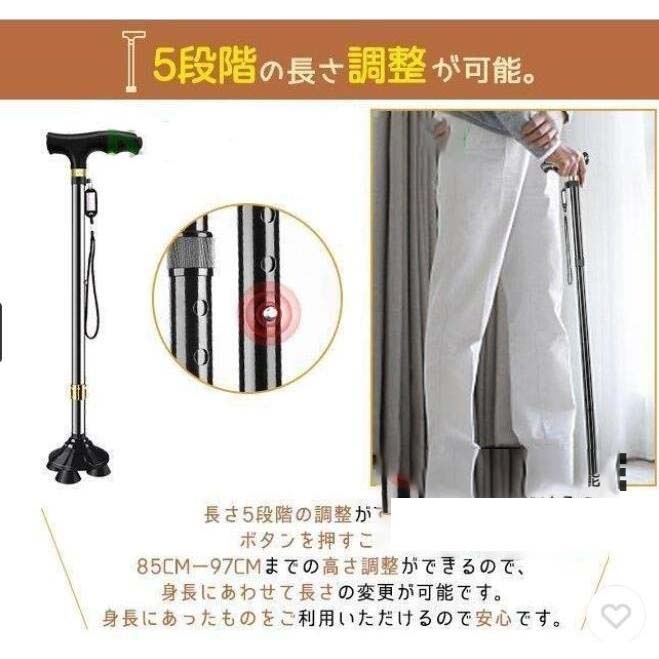 杖 自立式 男性 女性 ステッキ 4点 ブラック ワイン