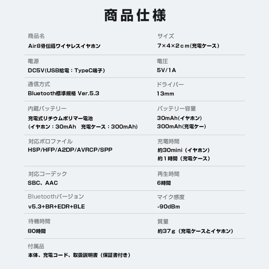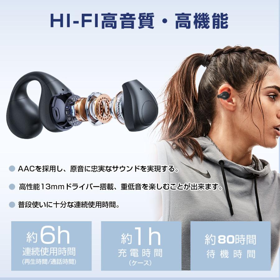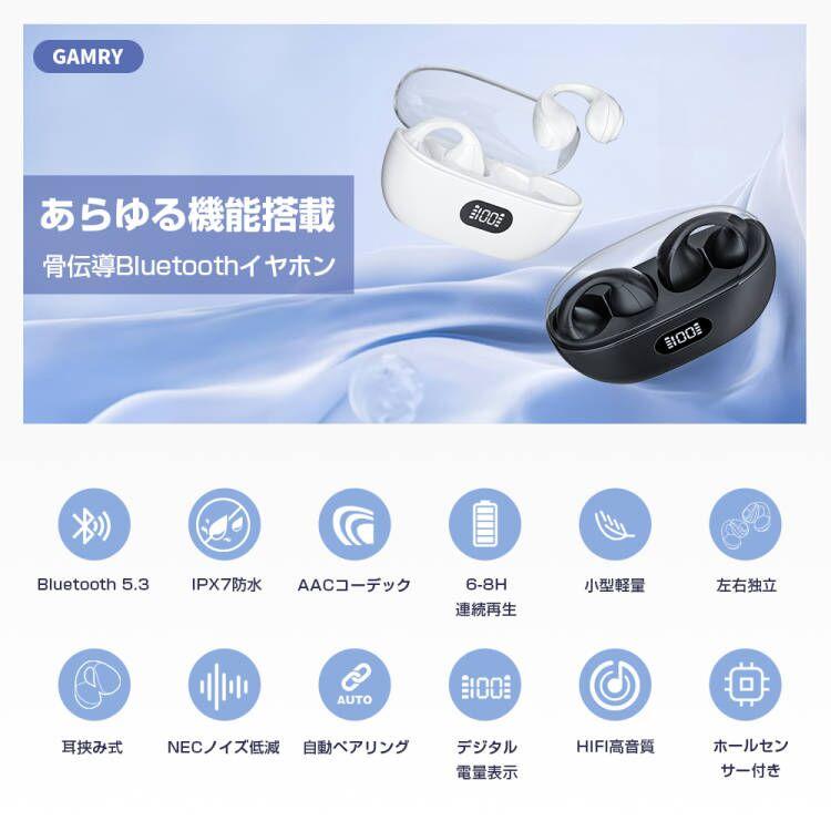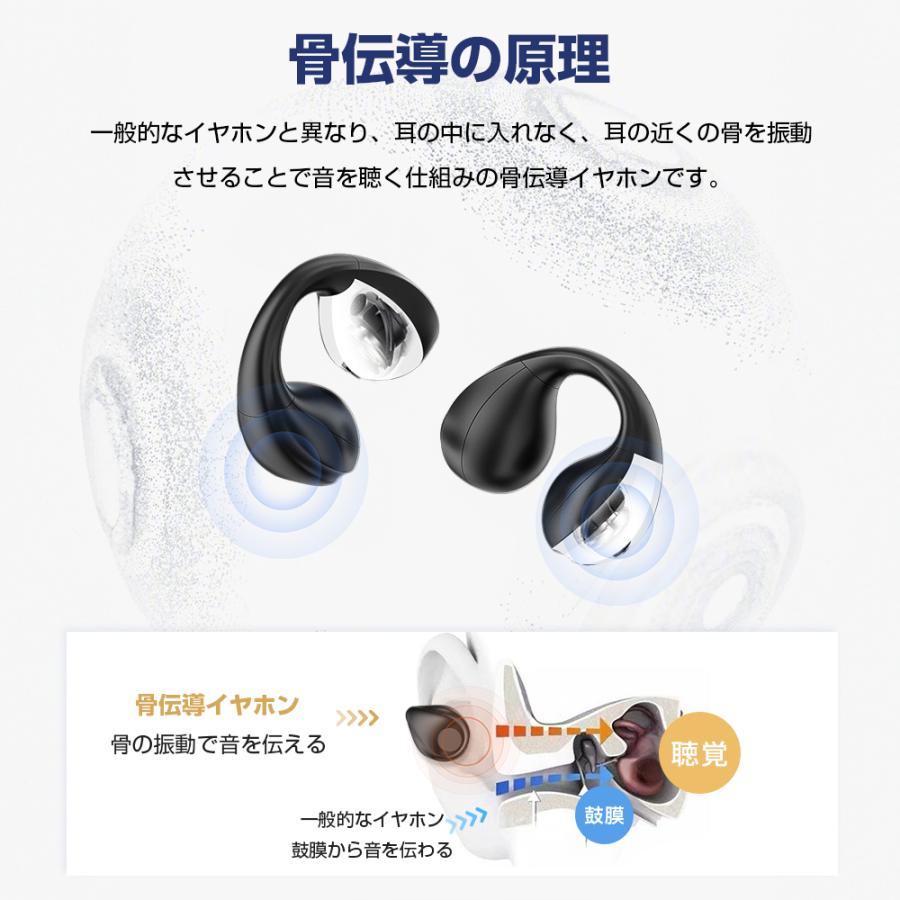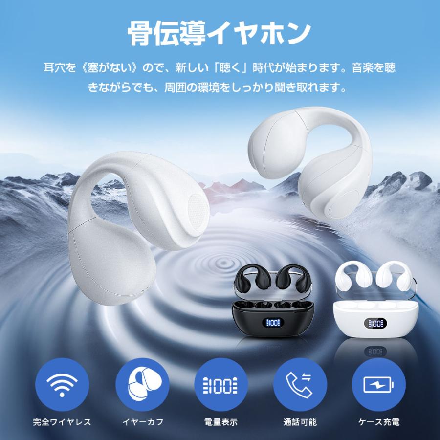 骨伝導 完全ワイヤレスイヤホン Blu ホワイト ブラック