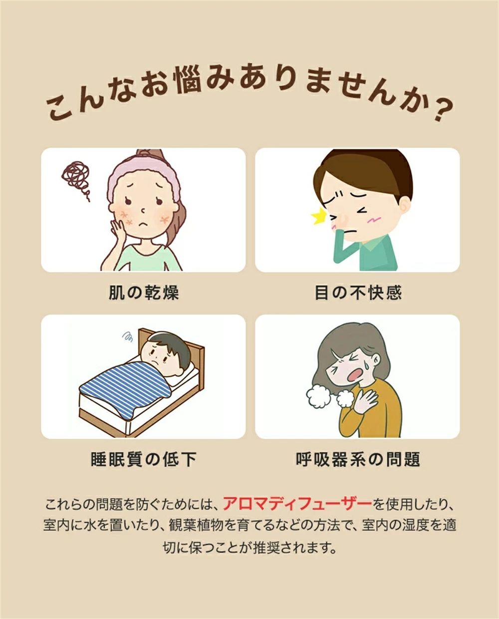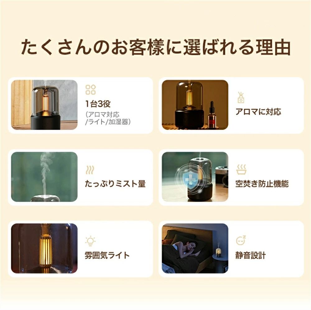 アロマディフュ一ザー 超音波 加湿器 ホワイト ブラック
