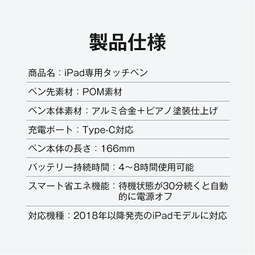 2018年以降発売されたすべてのiPadシリーズ専用のスタイラスペン。 電源オンでApple Pencilアップルペンシル対応アプリに瞬時にアクセス可能。面倒なペアリング等の設定は一切不要です。