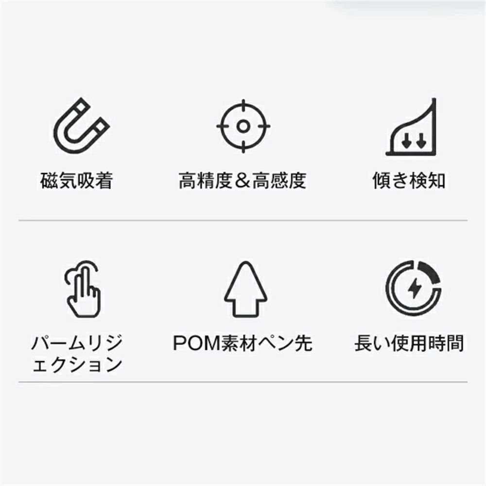 高性能センサーを採用で正確なタップと滑らかな操作を実現。線の途切れはもちろん、遅延・位置ズレもなく、ペン先感知機能が非常に繊細。どんどん書きたくなってしまう心地よい書き味に、誰もが虜になってしまうこと間違いなしです。 丸みのあるペン先は直径1.0mmと極細で、材質は純正のアップルペンシルと同じPOM素材を採用し、画面に傷つきにくい。本格的なスケッチからちょっとした手書きメモ、ツムツムなどのゲームまでいろいろな用途で大活躍できます。