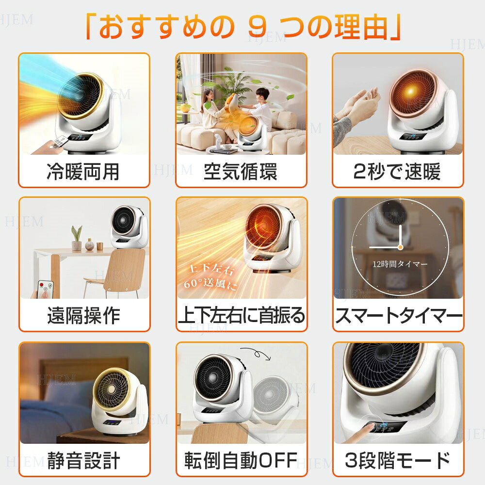サーキュレーター 冷暖兼用 温風ヒーター 小型 強力 暖房 ファンヒーター ヒーター 首振り 扇風機 電気代 リモコン付き 速暖 省エネ 転倒自動停止 セラミックヒーター 卓上 静音 軽 足元ヒーター