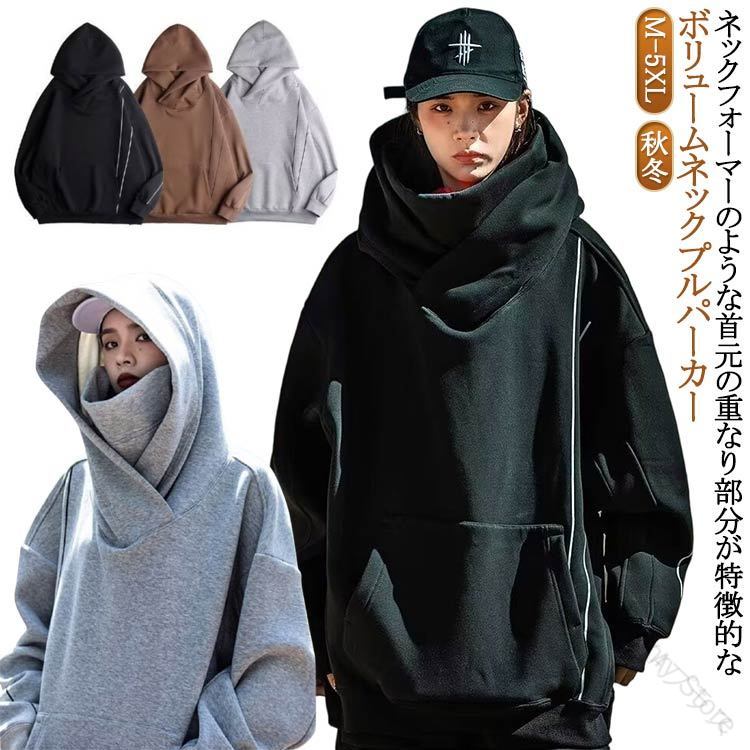ボリュームネック パーカー レディース レディースファッション 早い者勝ち ブラック グレー コーヒー M L XL 2XL 3XL