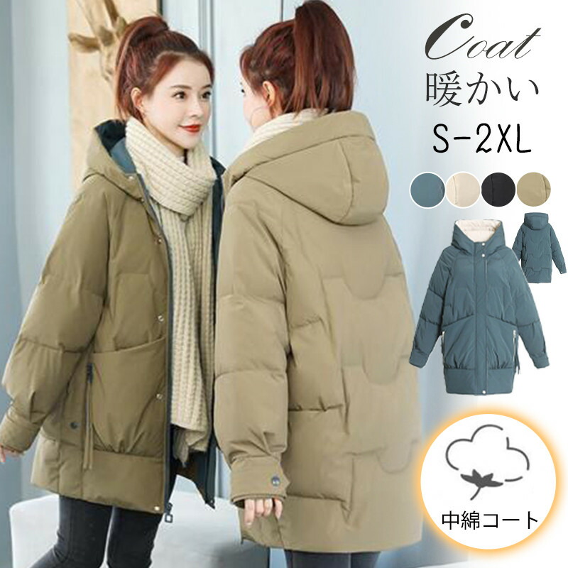 中綿コート レディース フード付き ダ コート ジャケット 早い者勝ち カーキ ブラック ブルー ホワイト S M L XL 2XL