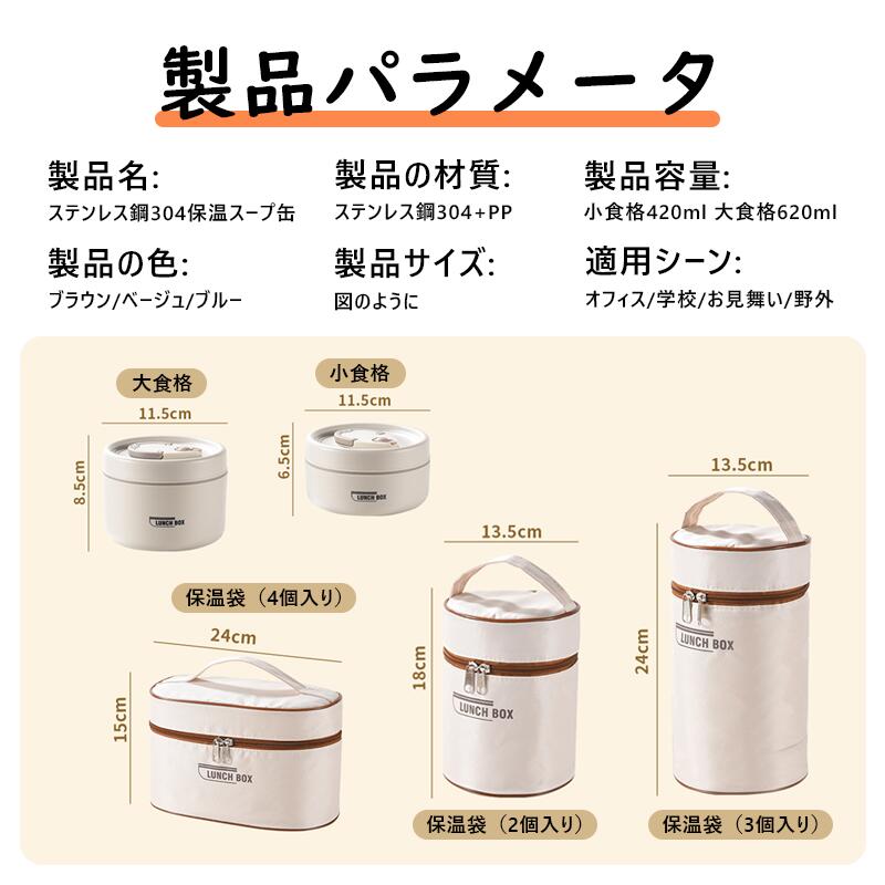 保温ランチボックス 保温弁当箱 保温バ キッチン用品 食器 調理器具 人気 ベージュ ブラウン ブルー 420ml*1(保温バッグ付かない) 420ml*1+620ml*1(保温バッグ付き) 420ml*2+620ml*1(保温バッグ付き) 420ml*2+620ml*2(保温バッグ付き)
