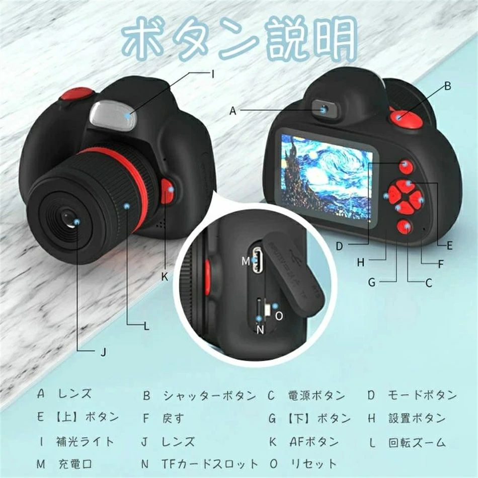 4800万画素 ビデオ解像度1920X1080で大人顔負けの高性能がふんだんに盛り込まれています。 また、見やすい2.4インチIPSスクリーンが搭載されて、32GのマイクロSDカード付きなので、写真約8277枚撮れます。更に、20ヶ国語のシステム多言語で様々なニーズにも対応します。