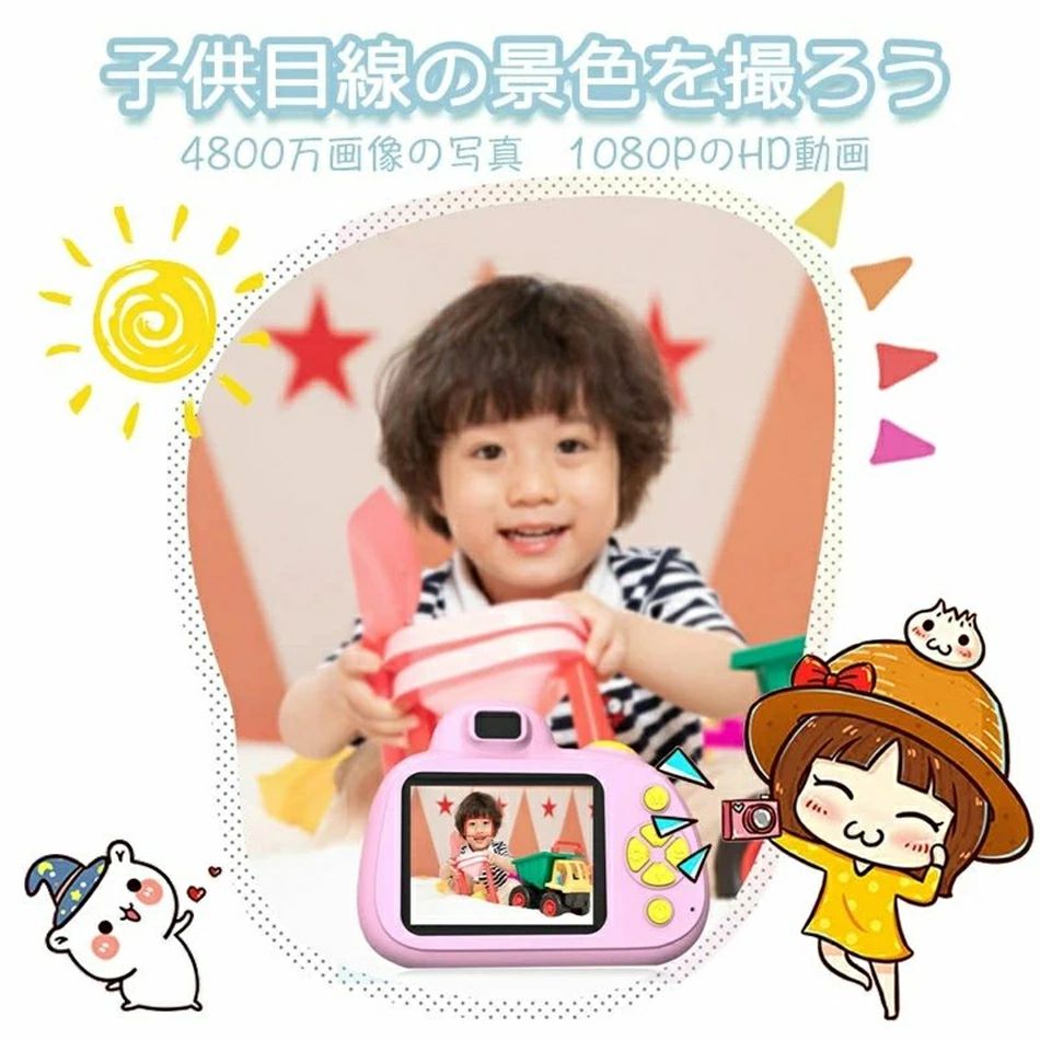 子供の好みに合わせて可愛くてデザイン 安全の素材を採用 145gの軽量タイプ 耐衝撃性に優れるキッズ用カメラです。子供にカメラを持たせて、撮りたいものを探す意欲を持ち、好奇心を育てることで、新しい世界を発見するきっかけにもなるかもしれません!