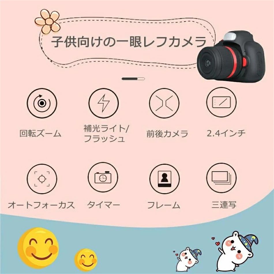 子供一眼レフカメラ 子供用 デジタルカメラ トイカメラ 子供プレゼント キッズカメラ 自撮可能 2.4インチ IPS画面 ズーム ミニカメラ 定時自撮り 3連写 誕生日 知育 教 子供の日