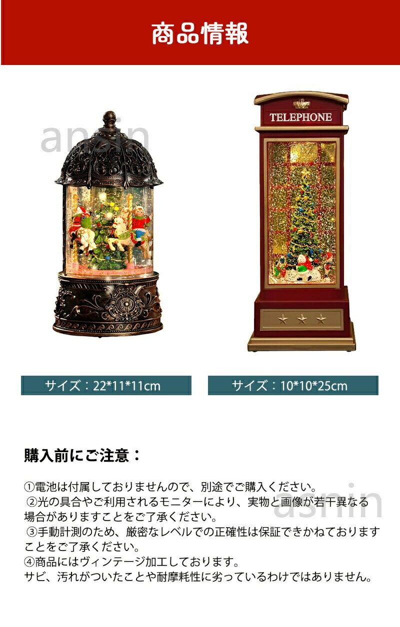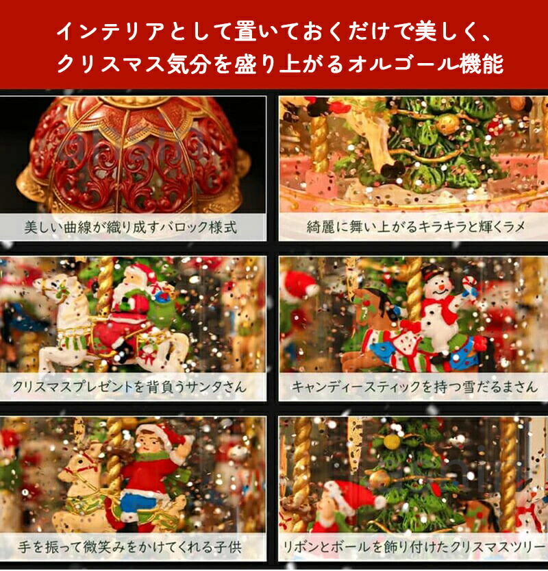 スノードーム クリスマスオルゴール メ 回転木馬(レッド) 回転木馬(ブラウン) テレフォンボックス (レッド) テレフォンボックス (グリーン) テレフォンボックス (ブラウン)