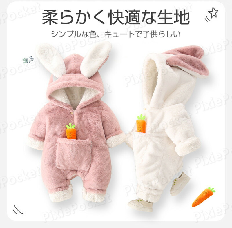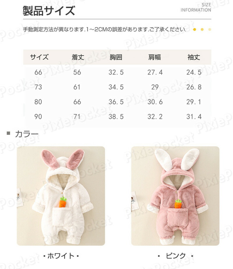 うさぎさん 着ぐるみ ロンパース ベビ ベビー ベビー服 ファッション カバーオール ロンパース 特集 ピンク 白 66cm 73cm 80cm 90cm