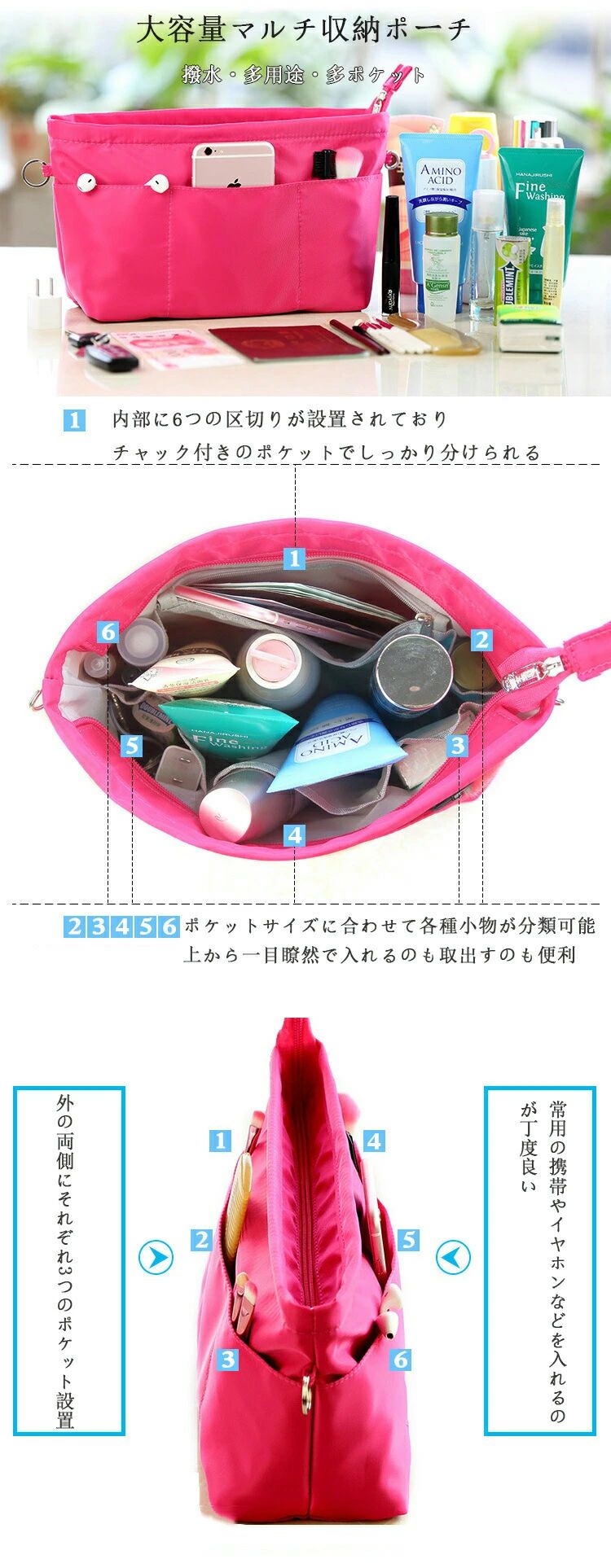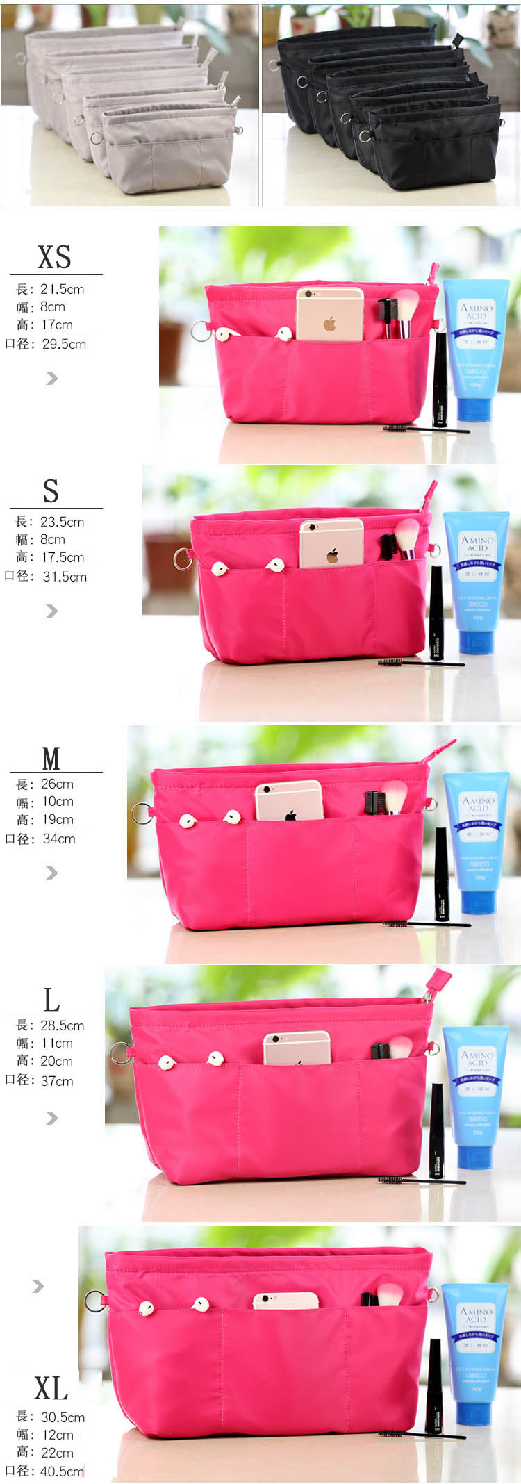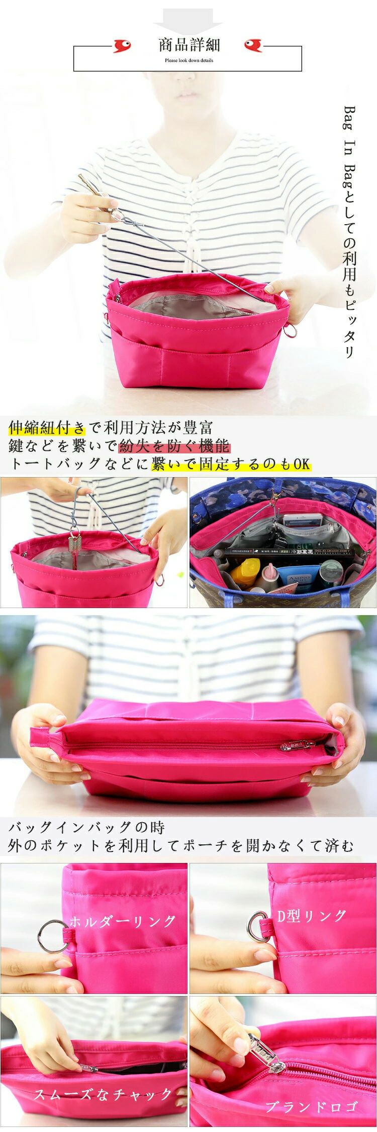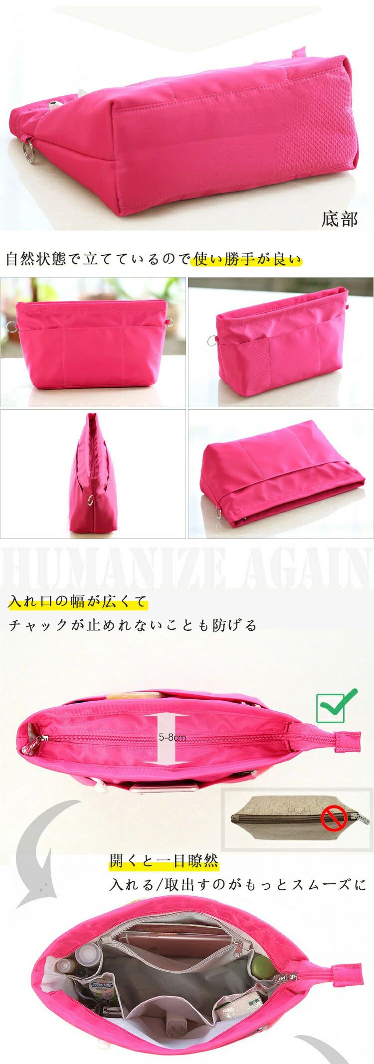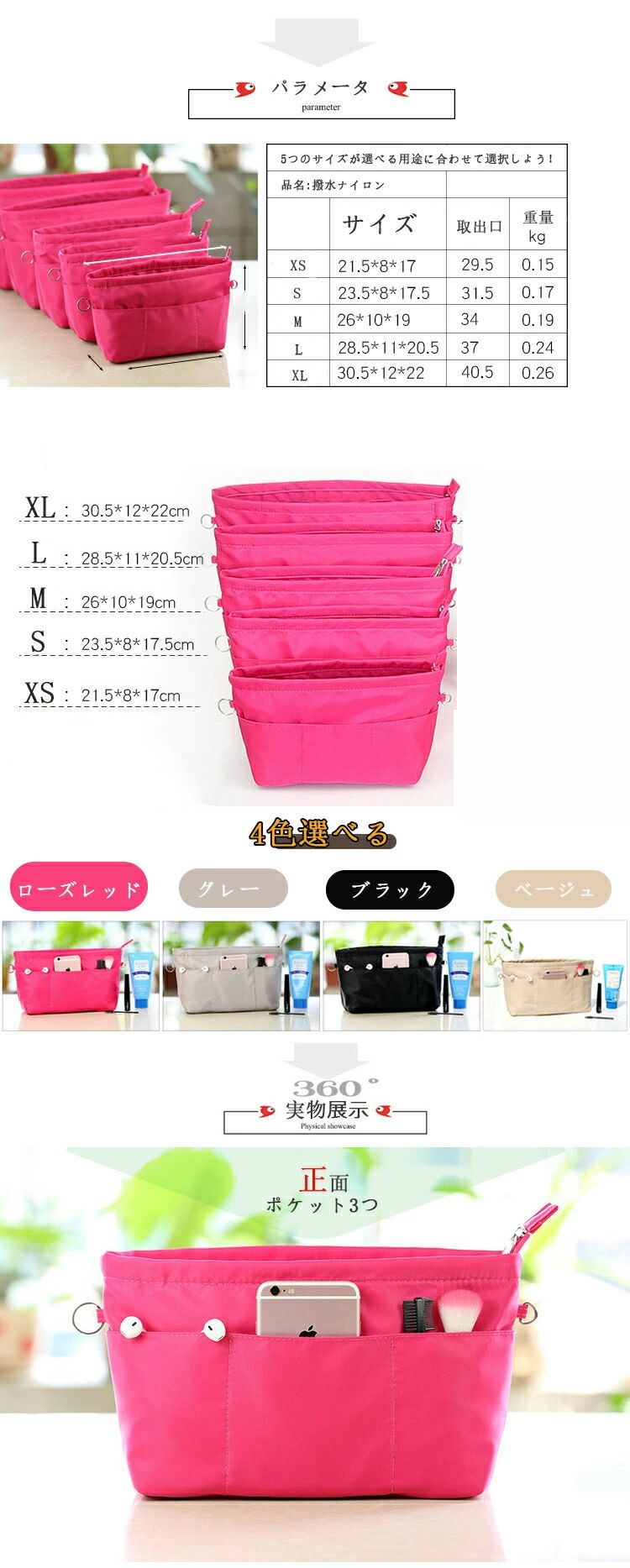 バッグインバッグ ナイロン XS S バッグ 小物 ブランド雑貨 超目玉商品 ベージュ グレー ブラック ローズレッド XS S M L XL