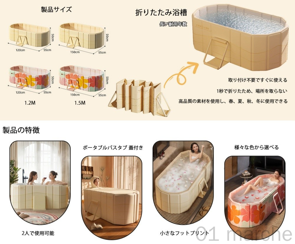 折りたたみ浴槽 大人 子供 1.2M 1.5M ポータブルバスタブ 蓋付き 折り畳み 大型 家庭用サウナ 室内 使用 組み立て不要 保温 収納便利 持運び便利 バスタブ コンパクト