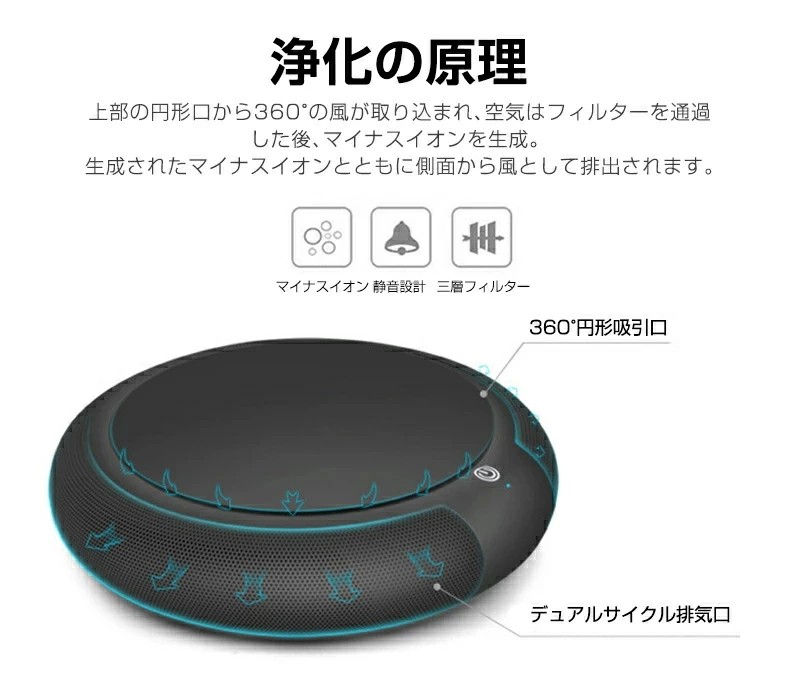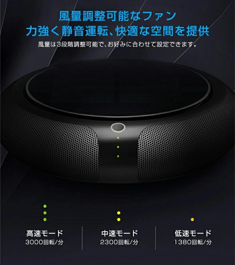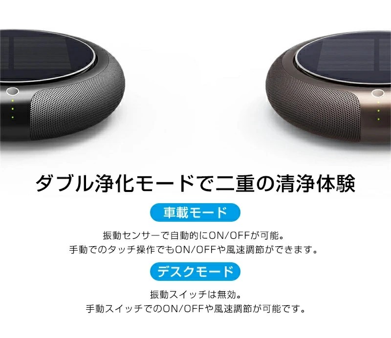 車用空気清浄機 空気清浄機 ソーラー ゴールド ブラック