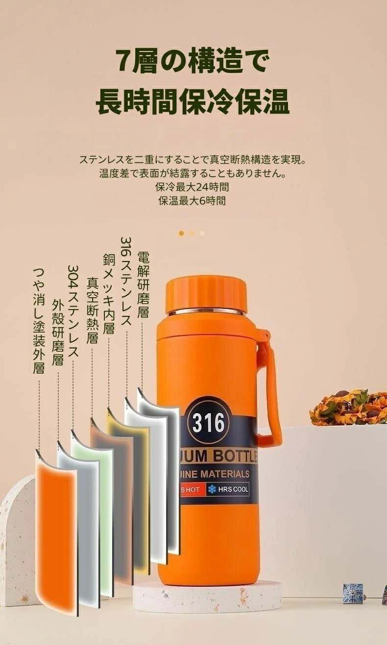 水筒 1l 1リットル 保温 保冷 直 弁当箱 水筒 水筒 マグボトル 通販 オレンジ ブラック ネイビー グリーン シルバー 600ML 800ML 1000ML
