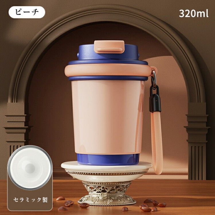 正規品 タンブラー セラミック セラミック製タンブラー コーティング 水筒 蓋付き 直飲み 炭酸 牛乳 コーヒー かわいい おしゃれ 耐熱 保温 保冷 ウォー トラベルカップ こぼれない 320ml