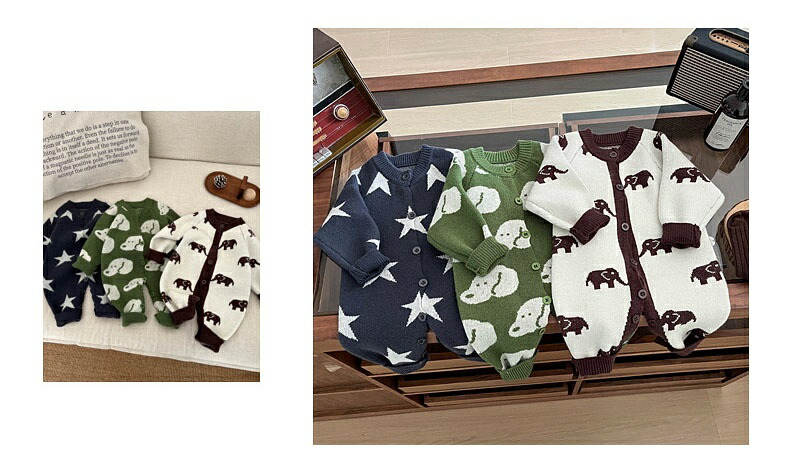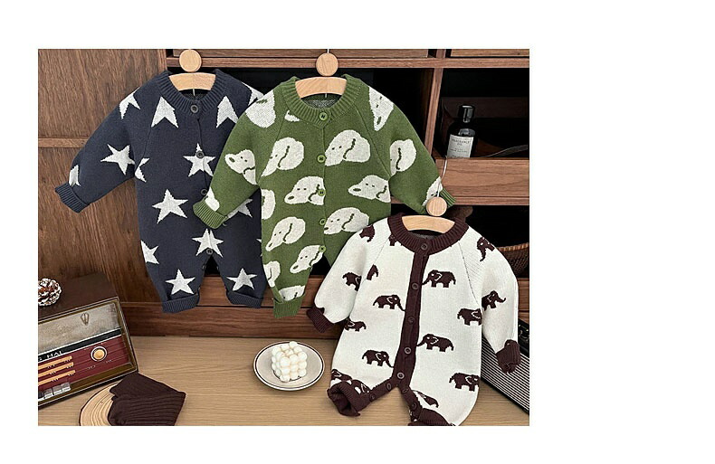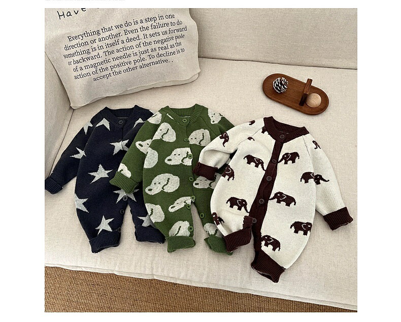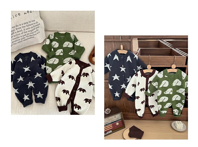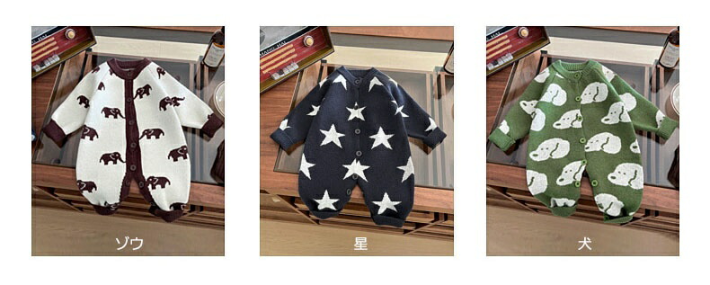 ベビー服 ニット ロンパース 新生児 キッズ ベビー マタニティ 通販 ゾウ 星 犬 66cm 73cm 80cm 90cm 100cm