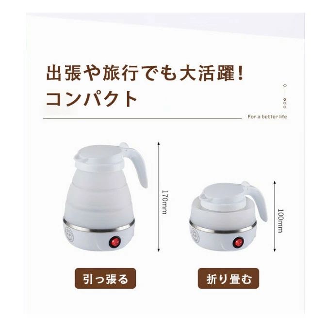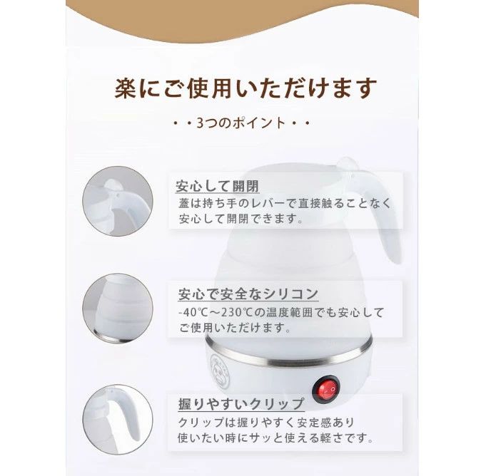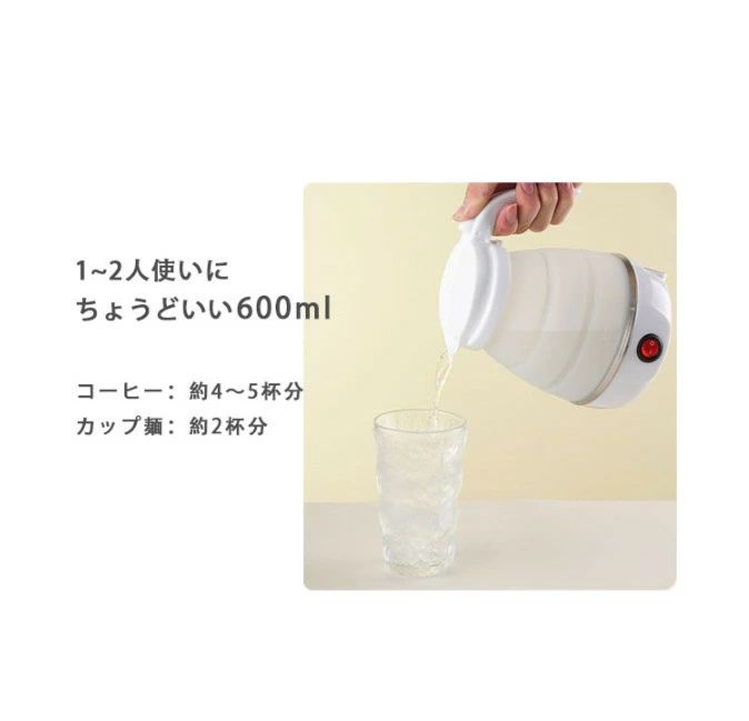 電気 ケトル ポット 600ml 折り ホワイト ブルー ピンク