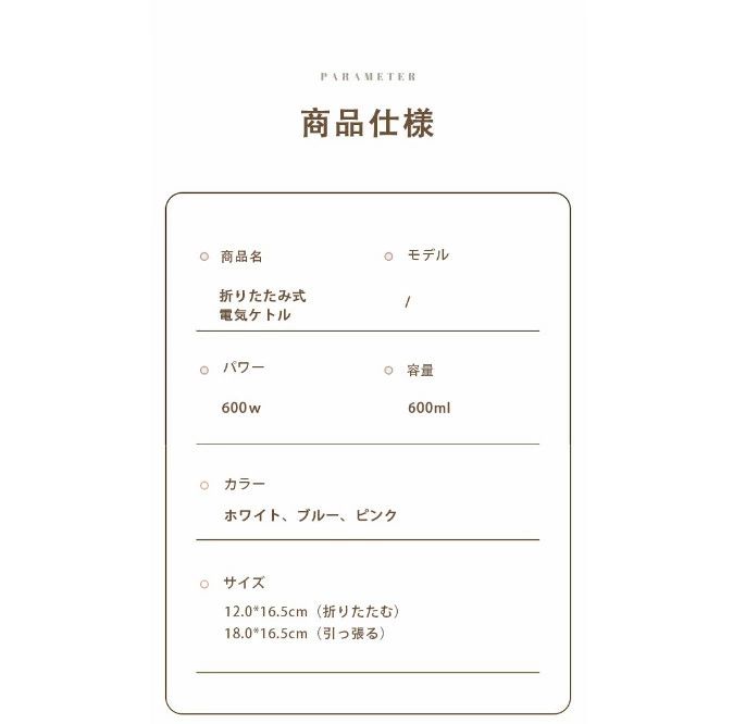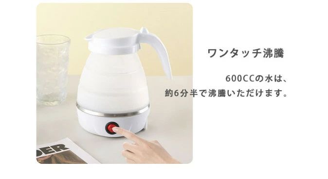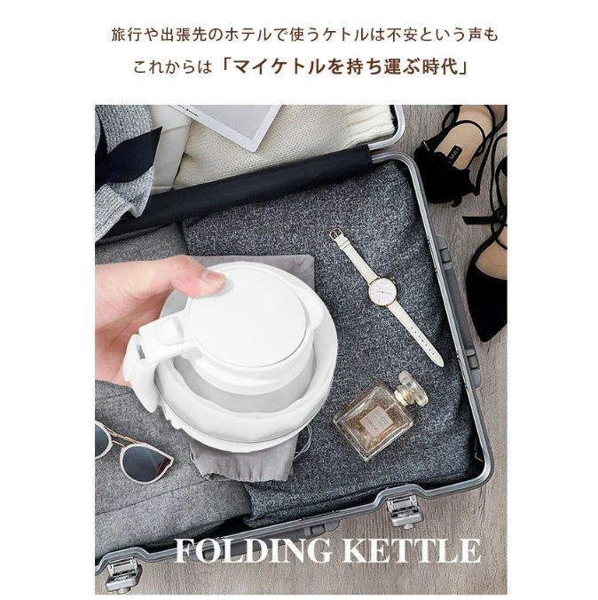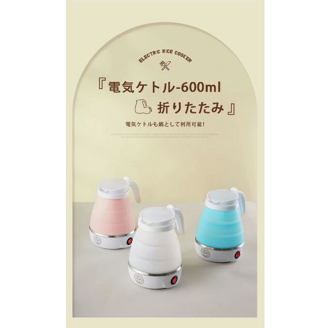 電気 ケトル ポット 600ml 折り ホワイト ブルー ピンク