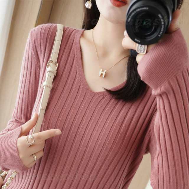 ニットセーター レディース ニット V レディースファッション 豊富 ピンク パープル オフホワイト オレンジ ブラック ホワイト キャメル S M L XL 2XL