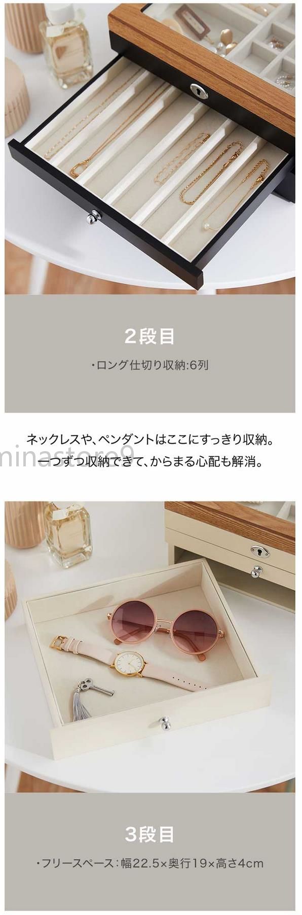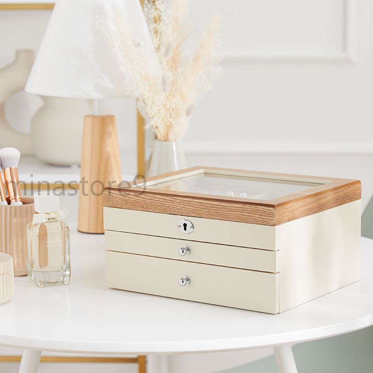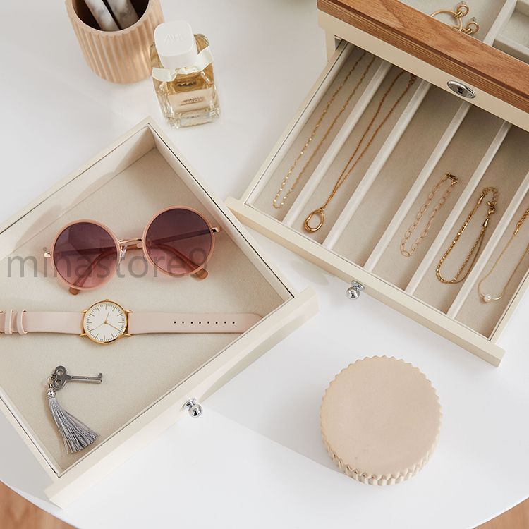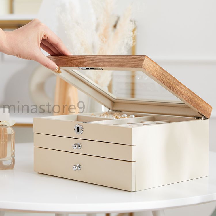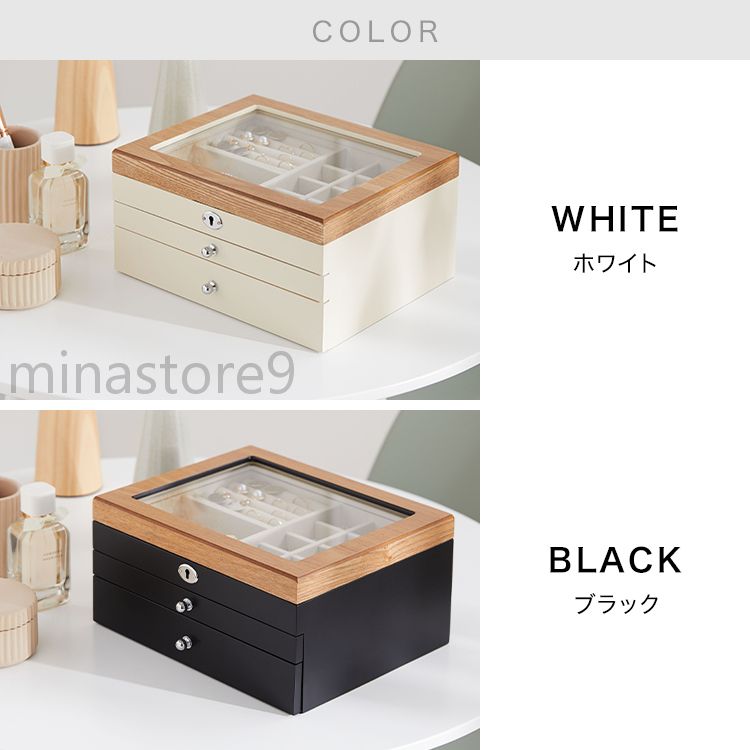 天然木製 引き出し式 3段収納 ジュエ ジュエリー アクセサリー用品 ギフトボックス ポーチ 特集 ホワイト ブラック