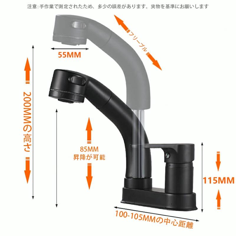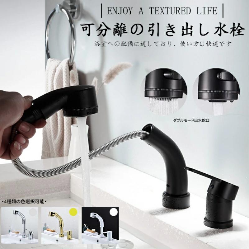 洗面台蛇口 洗面水栓 2つの水流モード ブラック シルバー ゴールド ホワイト