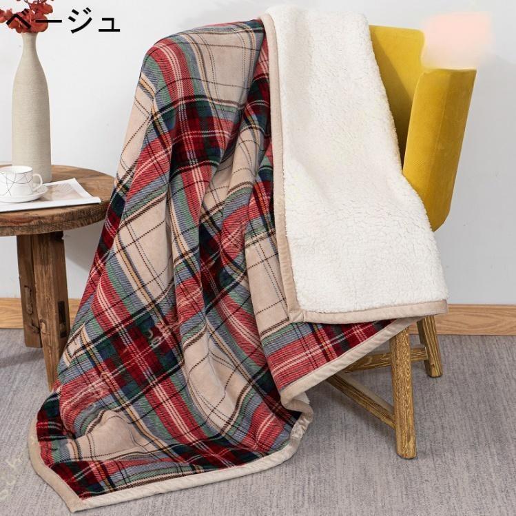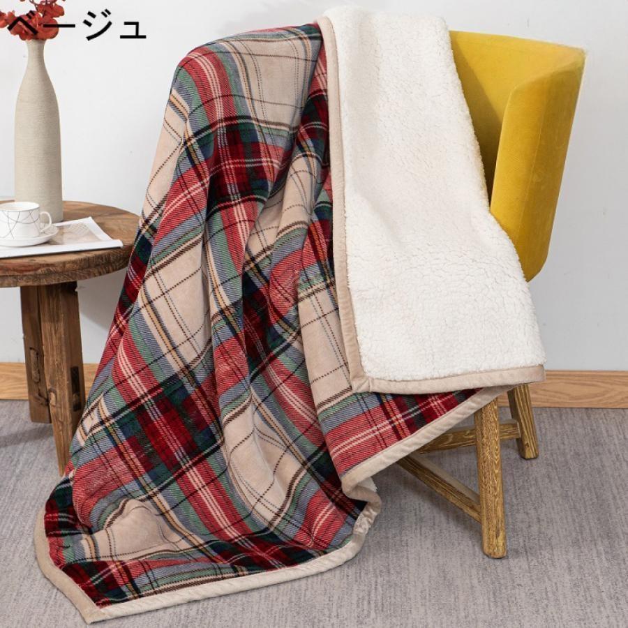 ブランケット 毛布 チェック柄 ボア 緑 ベージュ ブルー 127*152cm 150*200cm