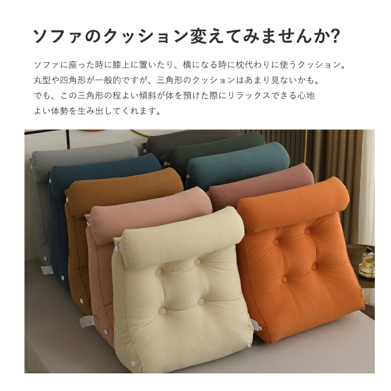 背もたれ クッション 三角クッション オレンジ ブルー ミックスピンク オリーブ グレー キャラメル ピンク アッシュブルー ベージュ ライトグレー ライトブルー S(45x55x26cm) L(55x60x26cm)