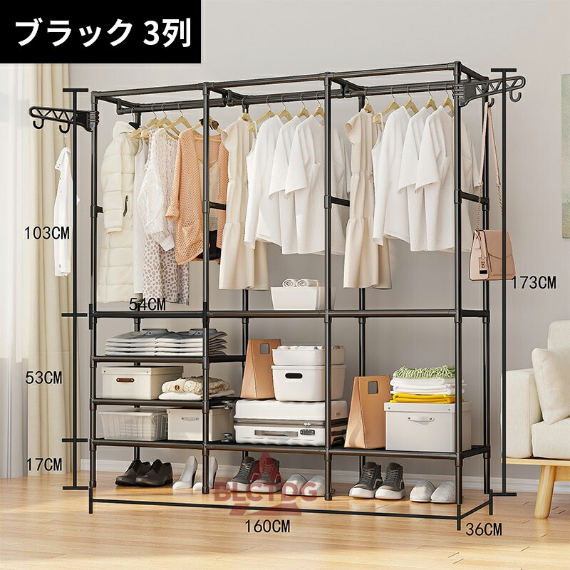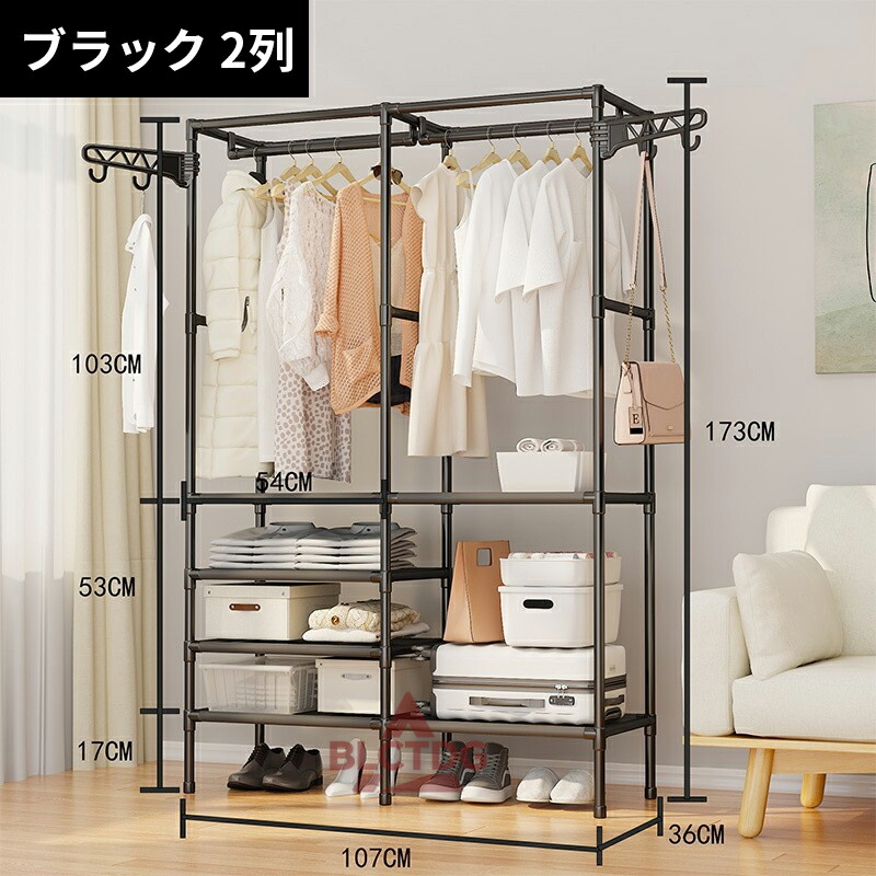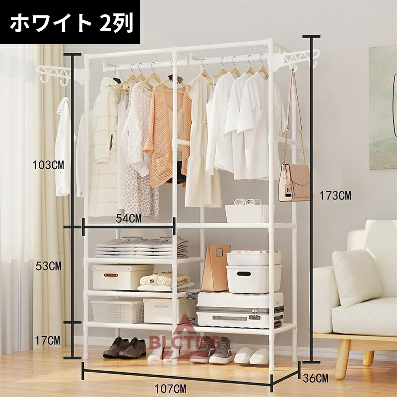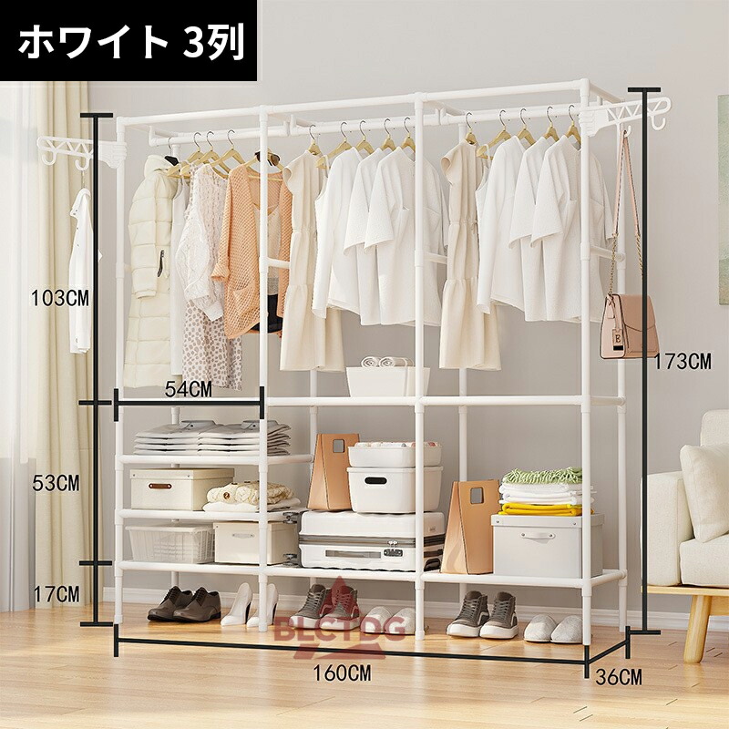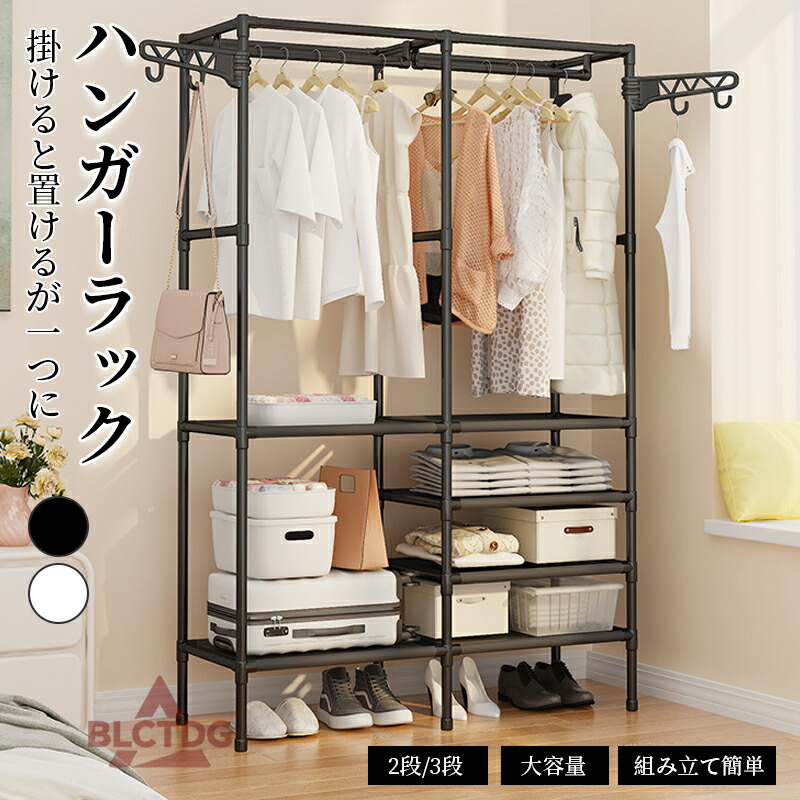 ハンガーラック スチール シングル ハ ブラック ホワイト 2列 3列
