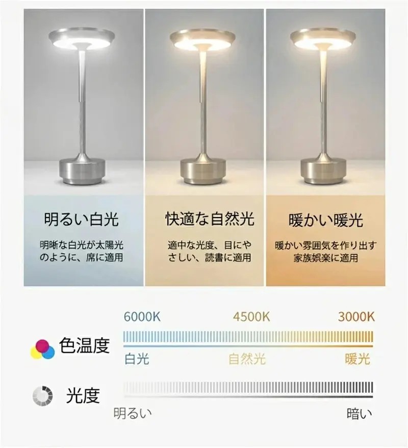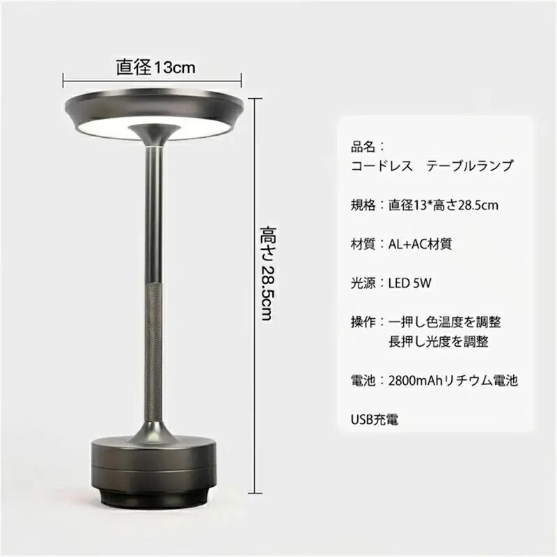 テーブルランプ コードレス USB-C ブラック シルバー ゴールド