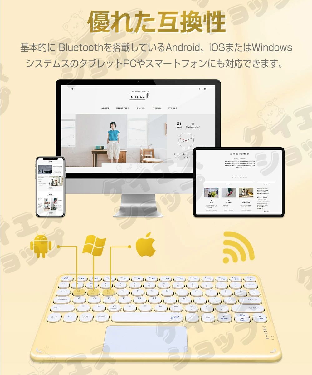 Bluetoothキーボード タッチパ ブラック ピンク ブルー グリーン ダークグリーン パープル イエロー